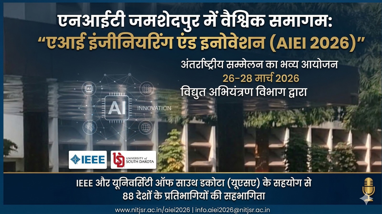 जमशेदपुर: राष्ट्रीय प्रौद्योगिकी संस्थान (एनआईटी) जमशेदपुर वैश्विक तकनीकी क्षेत्र में एक महत्वपूर्ण स्थान बनाने की दिशा में अग्रसर है। संस्थान के विद्युत अभियंत्रण विभाग (Department of Electrical Engineering) द्वारा आगामी 26–28 मार्च 2026 के दौरान प्रतिष्ठित “इंटरनेशनल कॉन्फ्रेंस ऑन एआई इंजीनियरिंग एंड इनोवेशन (AIEI 2026)” का आयोजन किया जाएगा।