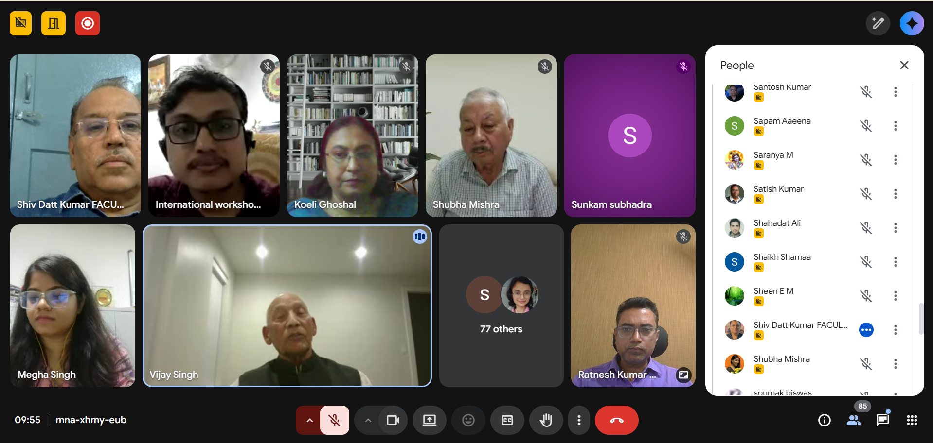कार्यक्रम के Guest of Honour, प्रो. शिव दत्त कुमार ने Algebra के अनुप्रयोगों पर प्रकाश डालते हुए विशेष रूप से Lie Algebra के Partial Differential Equations (PDEs) में उपयोग के महत्व को समझाया। वहीं दूसरे अतिथि प्रो. ए. के. मिश्रा (IMSc, चेन्नई) ने Machine Learning पर प्रेरक व्याख्यान प्रस्तुत किया और बताया कि आधुनिक कंप्यूटेशनल तकनीकें Algebra और Fluid Dynamics के सिद्धांतों से गहराई से जुड़ी हुई हैं।