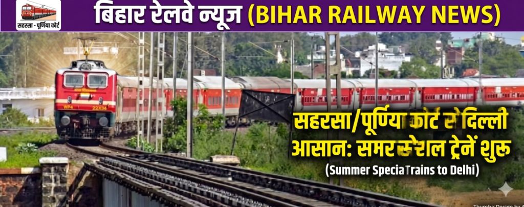 हाजीपुर: गर्मी की छुट्टियों और यात्रियों की अतिरिक्त भीड़ को देखते हुए पूर्व मध्य रेलवे ने उत्तर बिहार के यात्रियों को बड़ी सौगात दी है। रेलवे ने सहरसा और पूर्णिया कोर्ट से दिल्ली के आनंद विहार टर्मिनल के लिए विशेष ट्रेनों के परिचालन का निर्णय लिया है। यह ट्रेनें सुपौल, झंझारपुर, सीतामढ़ी और रक्सौल के रास्ते चलाई जाएंगी, जिससे कोसी और सीमांचल के हजारों यात्रियों को सीधा लाभ मिलेगा।