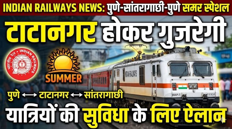 ग्रीष्मकालीन छुट्टियों के दौरान ट्रेनों में बढ़ने वाली यात्रियों की भारी भीड़ को ध्यान में रखते हुए रेलवे ने बड़ी राहत दी है। यात्रियों को कंफर्म बर्थ के साथ सुगम यात्रा की सुविधा उपलब्ध कराने के लिए पुणे और सांतरागाछी के बीच समर स्पेशल ट्रेन (02-02 फेरे) चलाने का निर्णय लिया गया है। यह ट्रेन दक्षिण पूर्व मध्य रेलवे के प्रमुख स्टेशनों और टाटानगर से होकर गुजरेगी। गाड़ी संख्या 01429 पुणे-सांतरागाछी स्पेशल ट्रेन पुणे से दिनांक 15 एवं 22 अप्रैल 2026 प्रत्येक बुधवार को चलेगी | इसी प्रकार गाड़ी संख्या 01430 सांतरागाछी–पुणे स्पेशल ट्रेन सांतरागाछी से दिनाँक 17 एवं 24 अप्रैल 2026 प्रत्येक शुक्रवार को चलेगी | इस गाड़ी का वाणिज्यिक ठहराव दक्षिण पूर्व मध्य रेलवे के गोंदिया, दुर्ग, रायपुर एवं बिलासपुर स्टेशनों में दिया गया है |