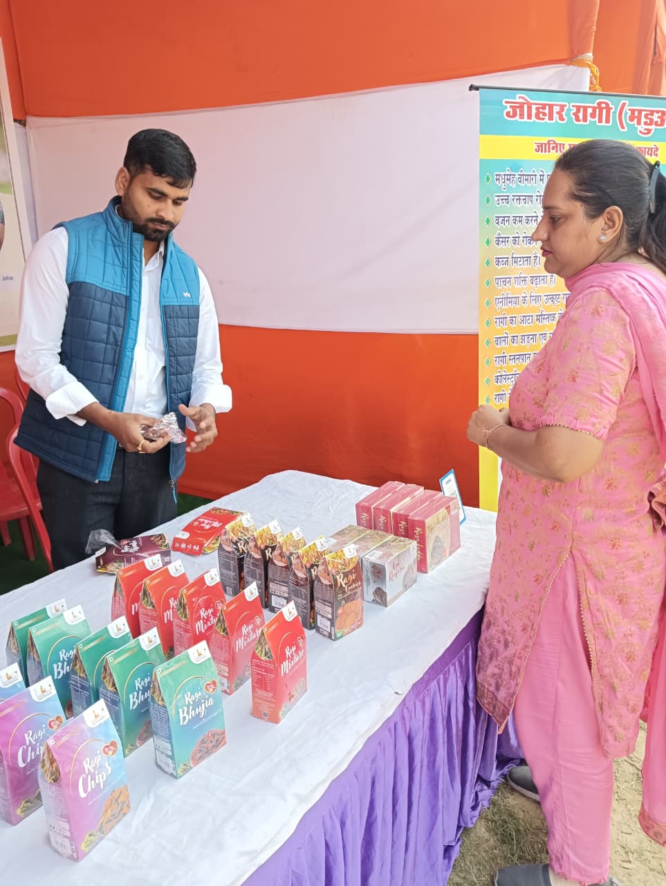 एक स्टॉल लगाया है धर्मेंद्र विश्वकर्मा ने। अखिल भारतीय विद्यार्थी परिषद से जुड़े रहे हैं। मोटे अनाजों से बनने वाले तमाम उत्पाद इनके पास हैं। वह बताते हैं-मेरे पास हेल्थ कांशस लोग ज्यादा आ रहे हैं। वे रागी के लड्डू, शुद्ध घी में बने ठेकुआ आदि को खूब पसंद कर रहे हैं। वह अब तक के सेल को लेकर बहुत उत्साहित हैं।