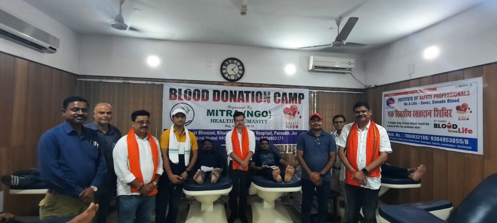 सामाजिक संस्था मित्र हेल्दी ह्यूमेनिटी के तत्वावधान में शनिवार को जमशेदपुर ब्लड सेंटर में रक्तदान शिविर का आयोजन किया गया. शिविर में कुल 61 लोगों ने रक्तदान किया. जिसमें दो महिला भी शामिल हुई. इस मौके पर जिला परिषद उपाध्यक्ष पंकज, पूर्व जिला परिषद उपाध्यक्ष राजकुमार सिंह,जिप सदस्य डा. पारितोष सिंह समेत कई लोगों ने रक्तदान शिविर में हिस्सा लेने वाले रक्तदाताओं का हौसला बढ़ाया. सुबह करीब 10 बजे से रक्तदान शिविर का आयोजन किया गया. इस दौरान इंस्टीच्यूट ऑफ सेफ्टी प्राफेशनल और प्रतीक संघर्ष फाउंडेशन के कई युवाओं ने शिविर में शामिल होकर रक्तदान किया. इस मौके पर जमशेदपुर ब्लड सेंटर के जीएम संजय चौधरी, प्रतीक संघर्ष फाउंडेशन के अरिजीत सरकार,मित्र संस्था के देवेंद्र सिंह, सोनी पाठक समेत कई लोग का पूर्ण योगदान रहा.
