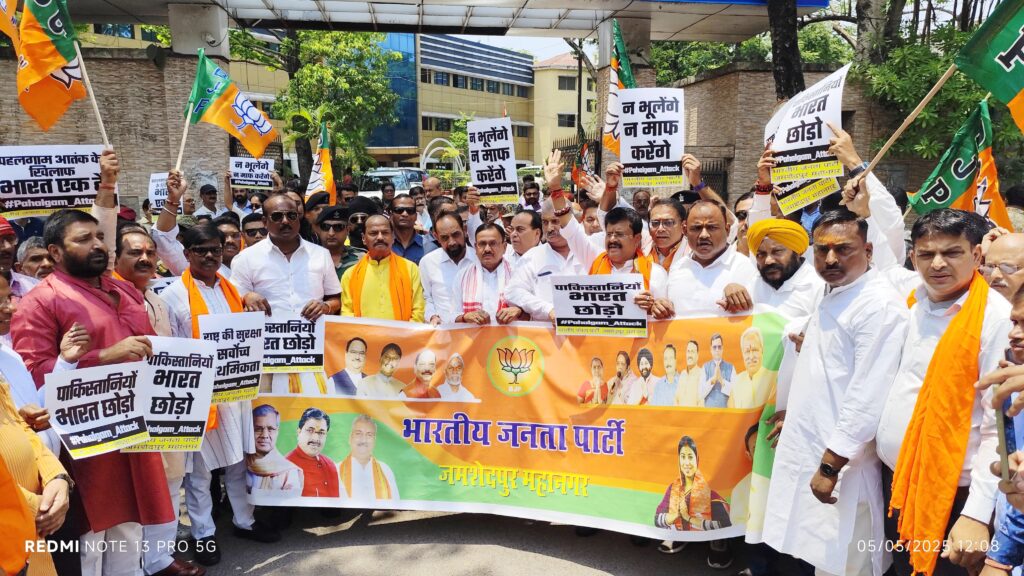 जमशेदपुर। पहलगाम आतंकी हमले के खिलाफ देशभर में गुस्सा फूट पड़ा है। इसी कड़ी में सोमवार को जमशेदपुर में भारतीय जनता पार्टी के नेताओं और कार्यकर्ताओं ने पाकिस्तानी नागरिकों को जिले से बाहर करने की मांग को लेकर जोरदार प्रदर्शन किया। भाजपा जमशेदपुर महानगर अध्यक्ष सुधांशु ओझा की अगुवाई में आयोजित प्रदर्शन में पूर्व मुख्यमंत्री रघुवर दास, सांसद विद्युत वरण महतो, पूर्व प्रदेश अध्यक्ष डॉ. दिनेशानंद गोस्वामी, प्रदेश मंत्री नंदजी प्रसाद समेत सैकड़ों कार्यकर्ता और आम नागरिक शामिल हुए। प्रदर्शन की शुरुआत साकची स्थित जिला भाजपा कार्यालय से हुई, जहां से कार्यकर्ता जिला उपायुक्त कार्यालय तक पैदल मार्च करते हुए पहुंचे। इस दौरान “पाकिस्तानियों भारत छोड़ो, पाकिस्तान मुर्दाबाद” जैसे नारे गूंजते रहे। कार्यकर्ताओं ने हाथों में आतंकवाद और पाकिस्तान विरोधी तख्तियां थाम रखी थीं, जो उनके आक्रोश को दर्शा रही थीं। जिला उपायुक्त कार्यालय पहुंचकर भाजपा प्रतिनिधिमंडल ने उपायुक्त की अनुपस्थिति में एडीसी के माध्यम से उपायुक्त के नाम एक ज्ञापन सौंपा।