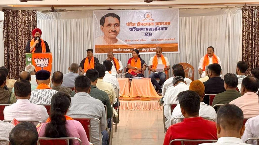 जमशेदपुर। भाजपा जमशेदपुर महानगर द्वारा पंडित दीनदयाल उपाध्याय प्रशिक्षण महाअभियान 2026 के अंतर्गत प्रशिक्षण कार्ययोजना बैठक का आयोजन शनिवार को सोनारी स्थित चित्रगुप्त भवन सभागार में सम्पन्न हुआ। जमशेदपुर महानगर अध्यक्ष संजीव सिन्हा की अध्यक्षता में आयोजित बैठक में मुख्यातिथि के रूप में पूर्व सांसद एवं झारखंड भाजपा के प्रदेश प्रवक्ता गीता कोड़ा शामिल हुई। वहीं, बैठक में प्रदेश मंत्री मनोज महतो, प्रदेश प्रवक्ता अमरप्रीत सिंह काले समेत कई पदाधिकारी एवं अभियान टोली के मंडल संयोजक एवं सह संयोजक मौजूद रहे। बैठक में अभियान के व्यापक सफलता एवं रूपरेखा तय करने के उद्देश्य से विस्तृत चर्चा की गई।