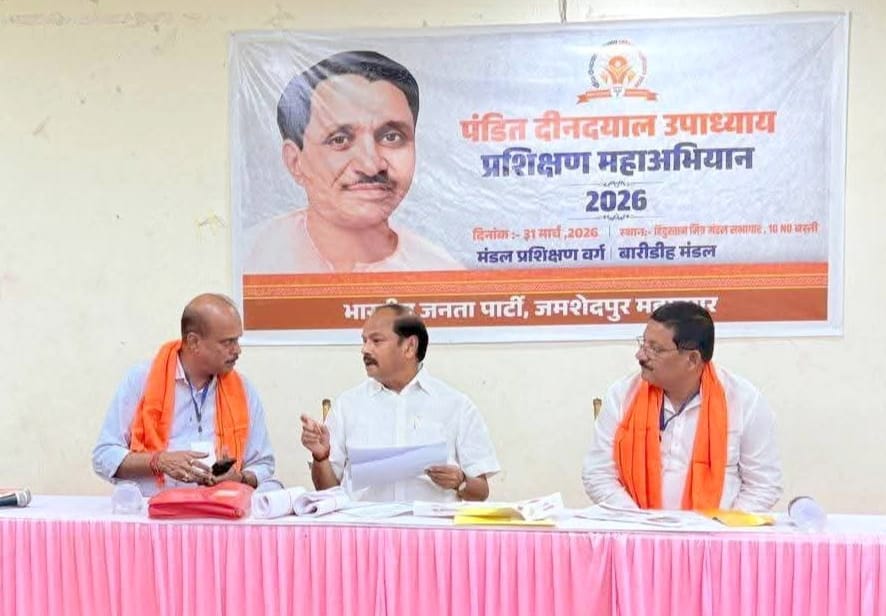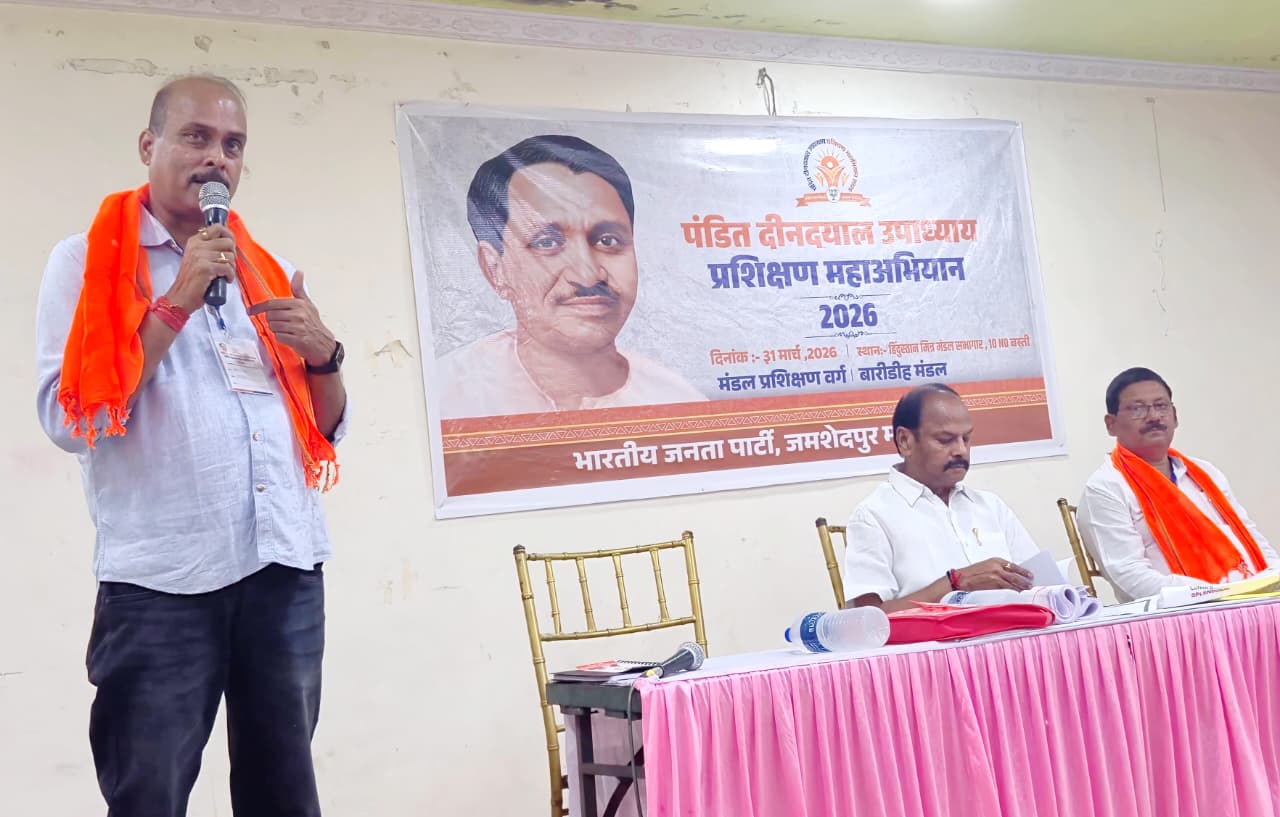 भारतीय जनता पार्टी (BJP) द्वारा चलाए जा रहे ‘पंडित दीनदयाल उपाध्याय प्रशिक्षण महाअभियान’ के तहत जमशेदपुर महानगर के पूर्वी विधानसभा अंतर्गत बारीडीह मंडल का दो दिवसीय प्रशिक्षण वर्ग बुधवार को उत्साहपूर्ण माहौल में संपन्न हो गया। हिंदुस्तान मित्रमंडल सभागार में आयोजित इस कार्यक्रम में कार्यकर्ताओं ने बढ़-चढ़कर हिस्सा लिया। मंगलवार से शुरू हुए इस शिविर में कुल 8 महत्वपूर्ण सत्र आयोजित किए गए, जिनका उद्देश्य कार्यकर्ताओं को वैचारिक और तकनीकी रूप से सशक्त बनाना था।