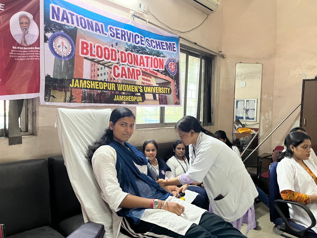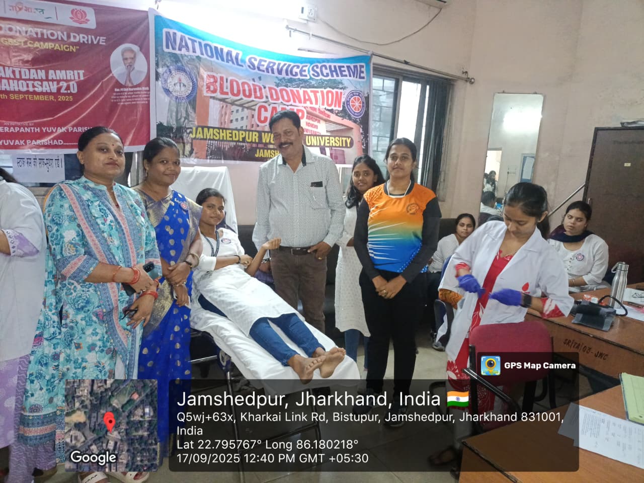 जमशेदपुर। समाज सेवा और मानवता की मिसाल पेश करते हुए जमशेदपुर महिला विश्वविद्यालय के बिष्टुपुर कैंपस में “रक्तदान अमृत महोत्सव 2.0” का सफल आयोजन किया गया। यह शिविर विश्वविद्यालय के एनएसएस विंग और एबीटीवाईपी (ABTYP) के संयुक्त तत्वावधान में आयोजित हुआ।