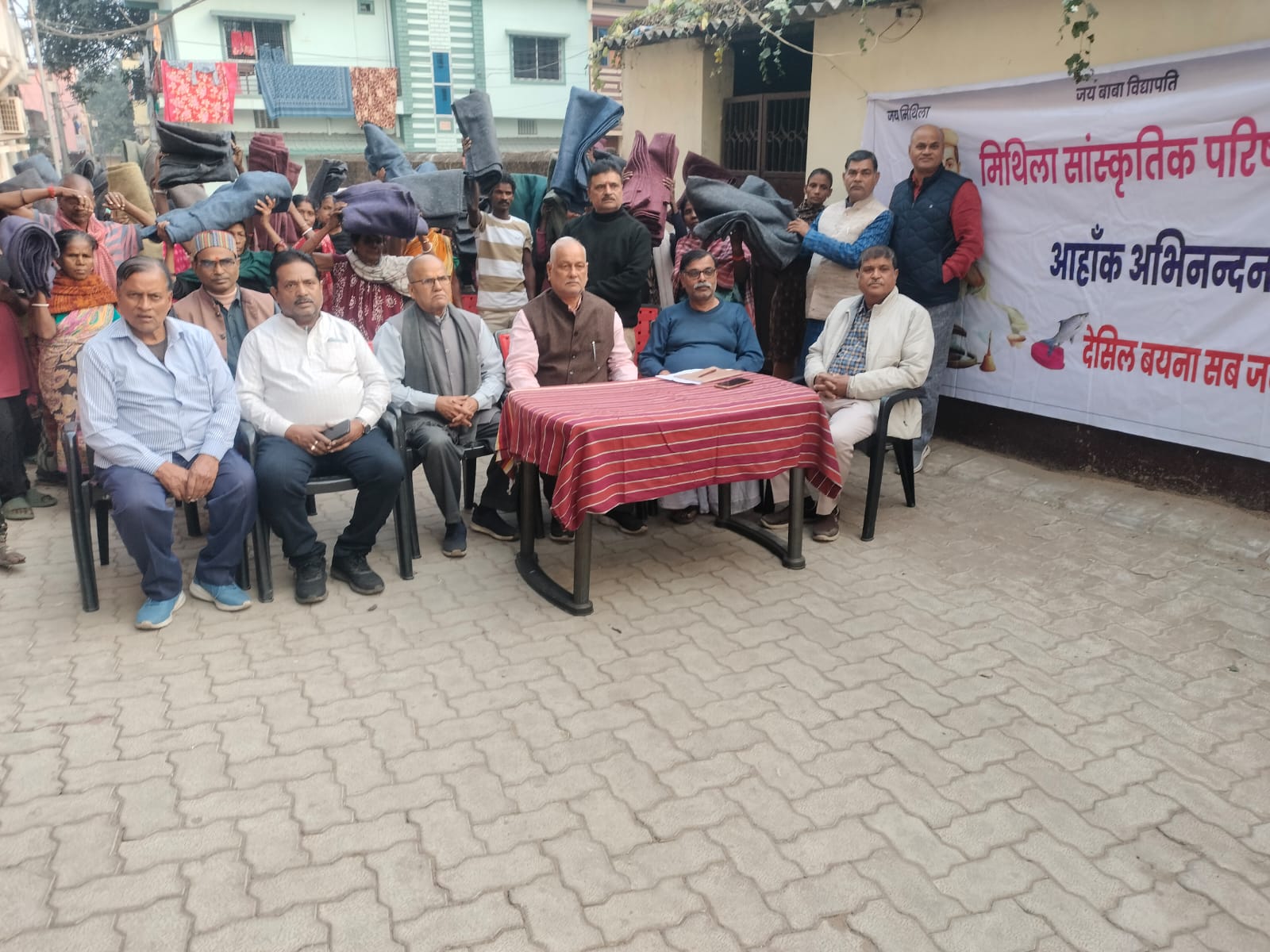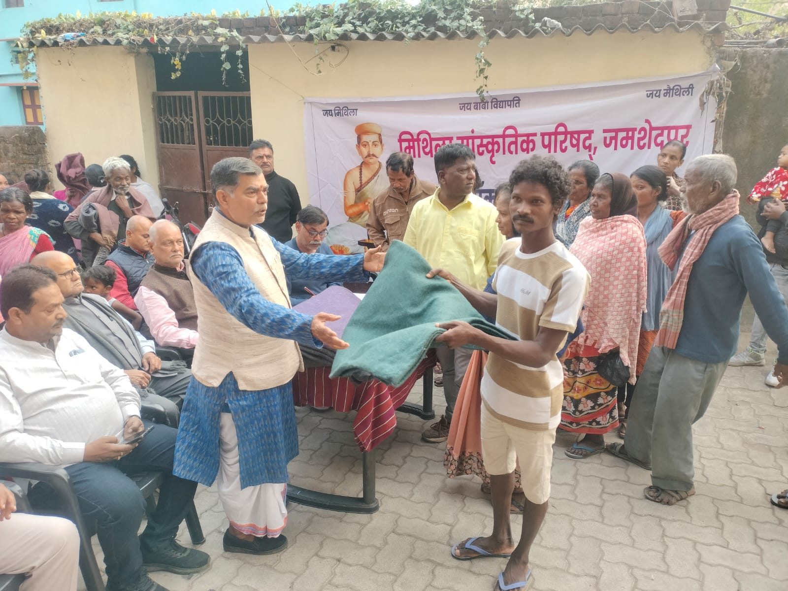 बढ़ती ठंड और शीतलहर के प्रकोप से जरूरतमंदों को राहत दिलाने के उद्देश्य से मिथिला सांस्कृतिक परिषद्, जमशेदपुर की ओर से शनिवार को मानगो उलीडीह स्थित पंडितजी लाईन तथा साकची क्षेत्र में कंबल वितरण कार्यक्रम का आयोजन किया गया। इस सेवा कार्य के माध्यम से परिषद् ने ठंड से जूझ रहे गरीब, असहाय एवं जरूरतमंद लोगों तक मदद पहुंचाने का सराहनीय प्रयास किया।