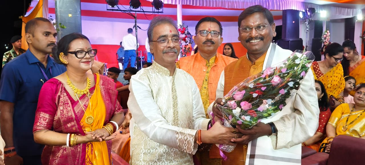 शुभ महाषष्ठी के पावन अवसर पर पूजा पंडाल का उद्घाटन झारखंड के पूर्व मुख्यमंत्री एवं भारत सरकार के पूर्व केंद्रीय मंत्री श्री अर्जुन मुंडा और उनकी धर्मपत्नी सह भाजपा नेत्री श्रीमती मीरा मुंडा ने विधिवत रूप से किया। इस अवसर पर पूरा वातावरण शंखध्वनि, ढाक की थाप और वैदिक मंत्रोच्चार से गूंज उठा।