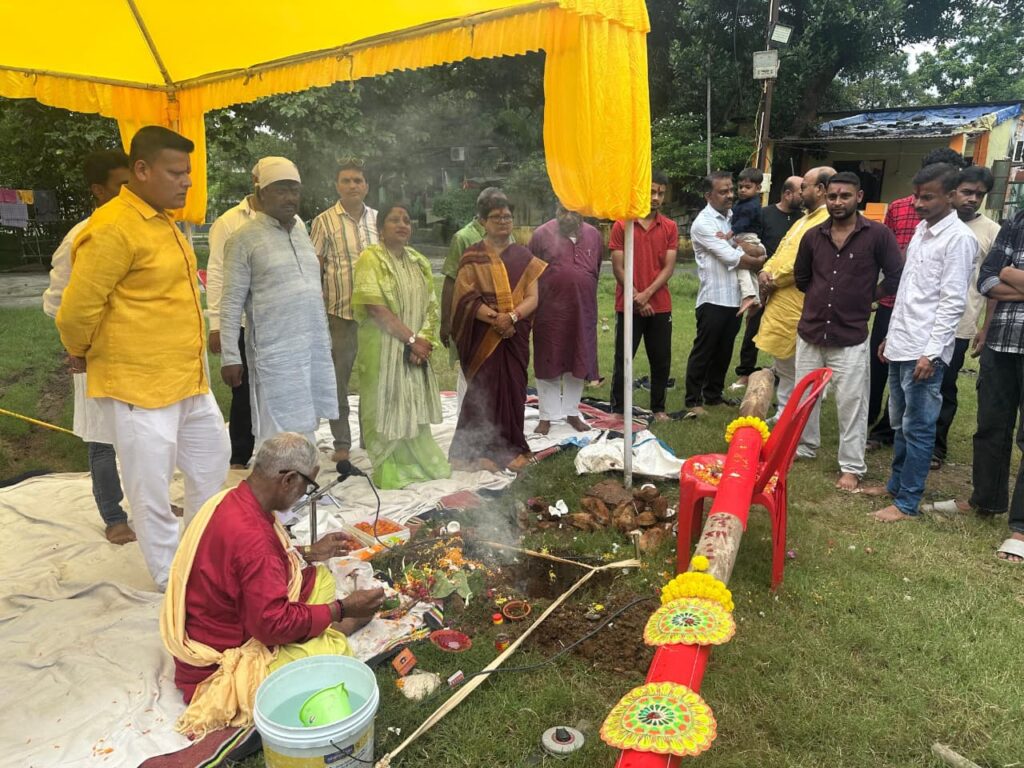 पूजन कार्य पुरोहित स्वपन भट्टाचार्जी ने वैदिक मंत्रोच्चार के बीच सम्पन्न कराया। इसके साथ ही पंडाल निर्माण की औपचारिक शुरुआत हो गई। 50वें वर्ष में पहली बार पश्चिम बंगाल के कुशल कारीगरों द्वारा थीम आधारित विराट पंडाल का निर्माण किया जाएगा, जो इस बार प्रतिमा के साथ विशेष आकर्षण का केंद्र रहेगा।