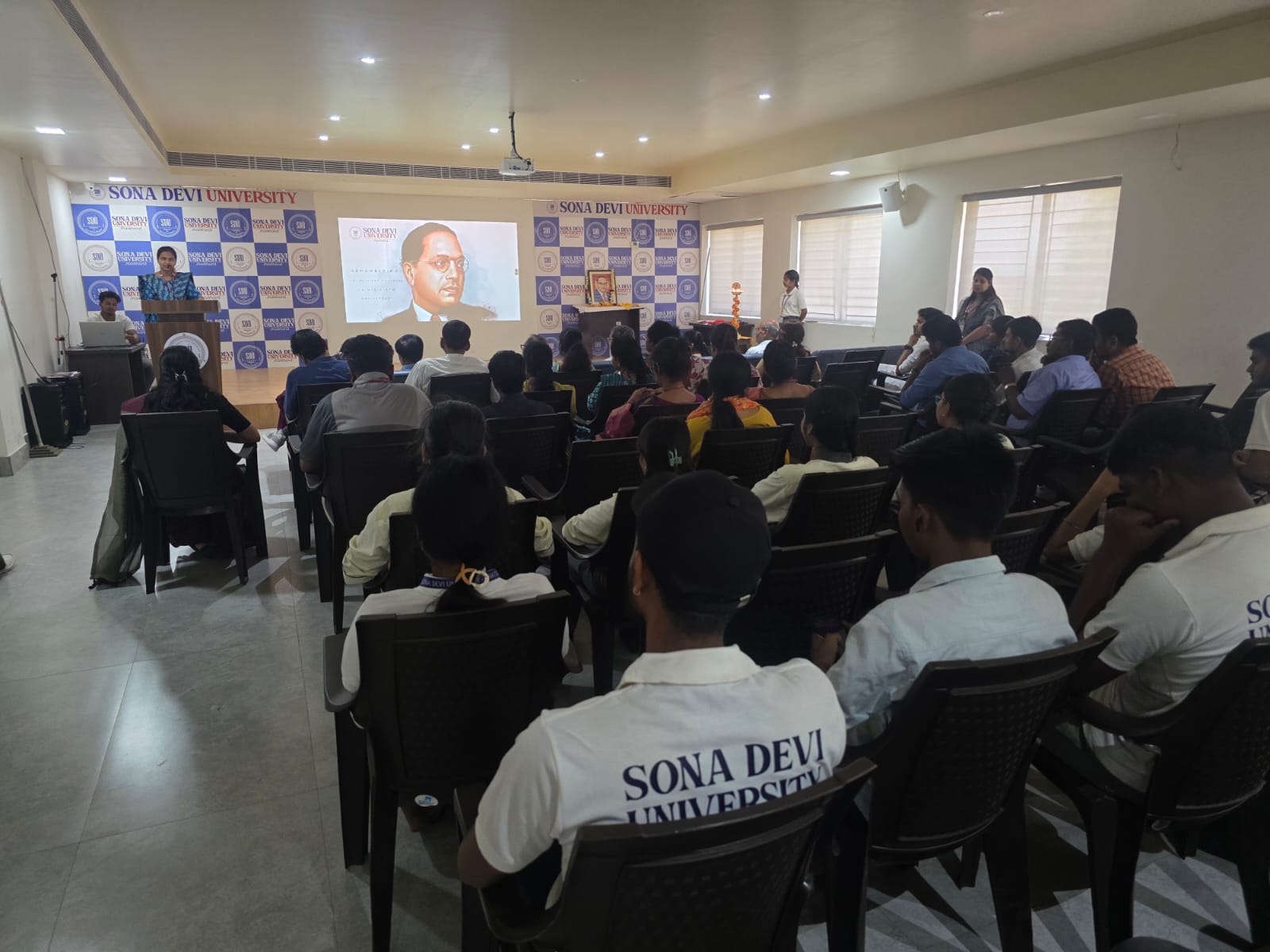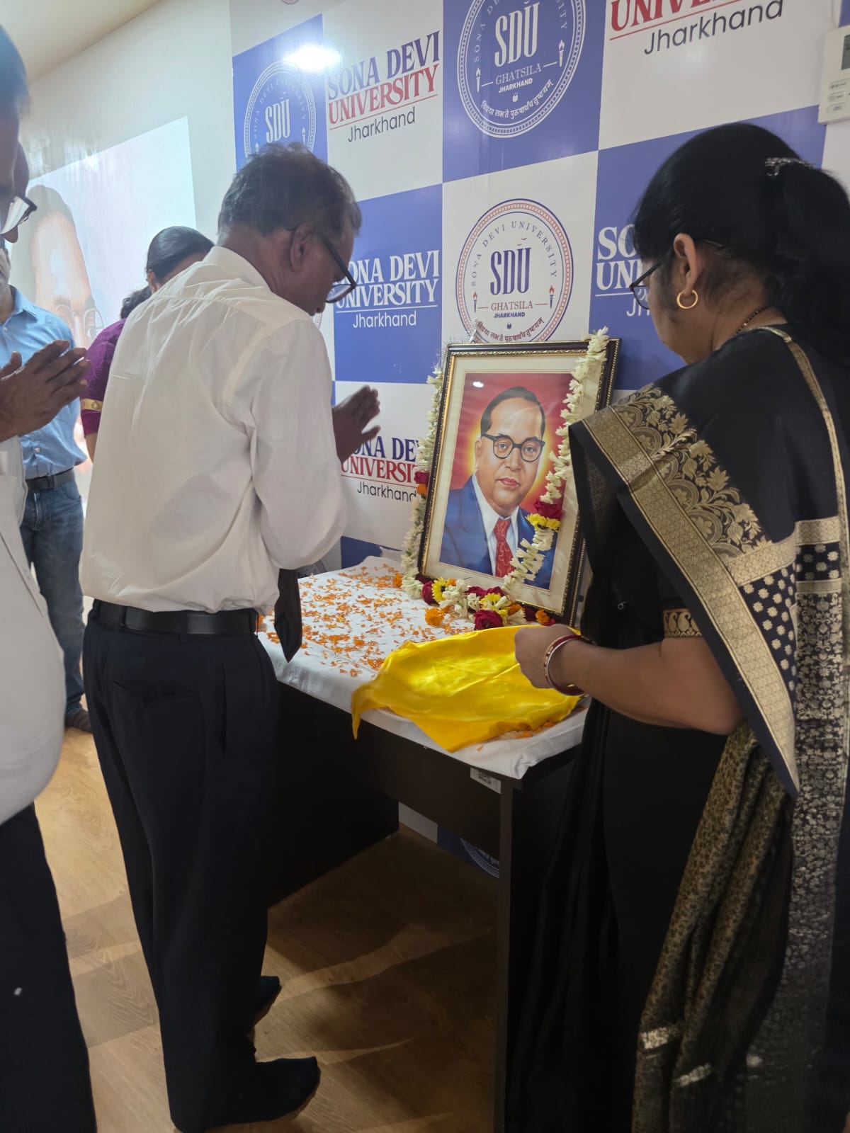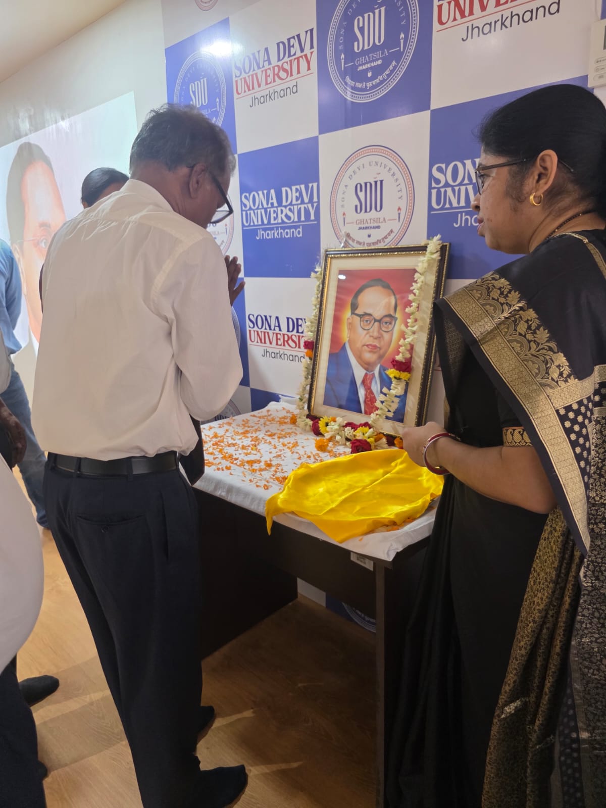 घाटशिला स्थित सोना देवी विश्वविद्यालय के विवेकानन्द ऑडिटोरियम में आज संविधान निर्माता और भारत रत्न डॉ. भीमराव रामजी अंबेडकर की जयंती पूरे उत्साह और सम्मान के साथ मनाई गई। इस अवसर पर शिक्षाविदों और छात्रों ने बाबा साहब के जीवन संघर्ष, उनके सामाजिक योगदान और भारतीय संविधान के निर्माण में उनकी अमूल्य भूमिका पर गहराई से विचार-विमर्श किया।