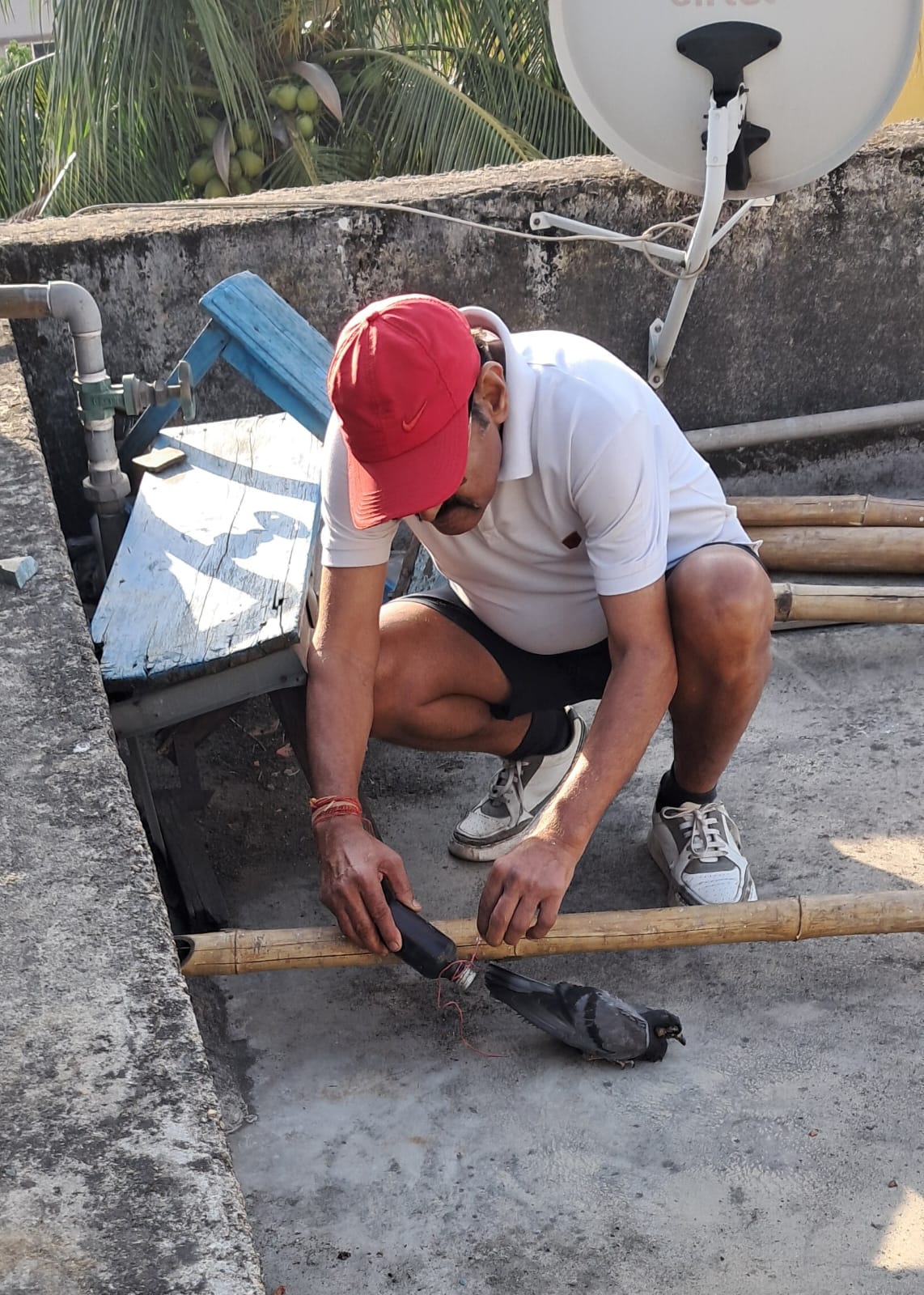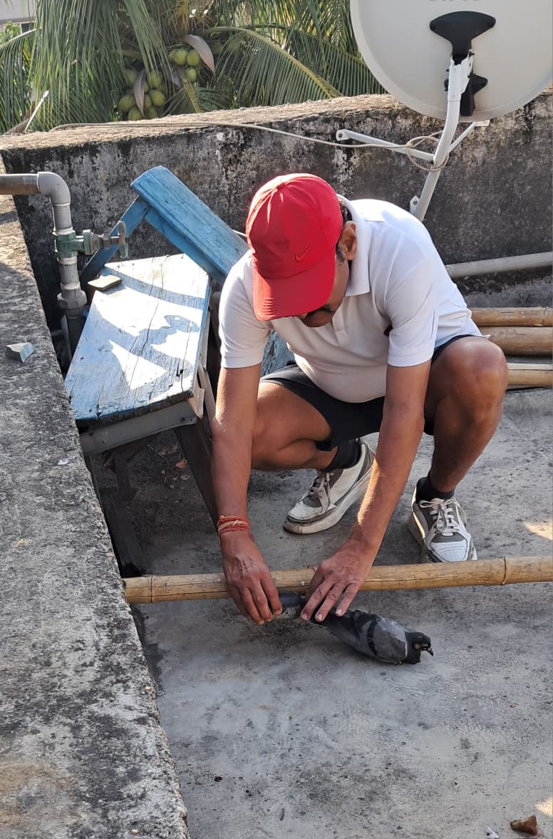 घटना का विवरण देते हुए समाजसेवी श्रीकांत देव ने बताया कि शनिवार सुबह वे अपनी नियमित दिनचर्या के अनुसार मॉर्निंग वॉक (सुबह की सैर) के लिए निकले थे। जब वे सैर से वापस अपने घर लौटे, तो उनकी नजर अपनी छत पर गई। वहां उन्होंने देखा कि एक पक्षी बेहद बुरी तरह से छटपटा रहा है और उड़ने का प्रयास कर रहा है, लेकिन वह उड़ नहीं पा रहा है। पक्षी की यह दयनीय स्थिति देखकर श्रीकांत देव तुरंत छत पर पहुंचे। वहां जाकर उन्होंने जो देखा, उससे उन्हें पक्षी की पीड़ा का अंदाजा हो गया।