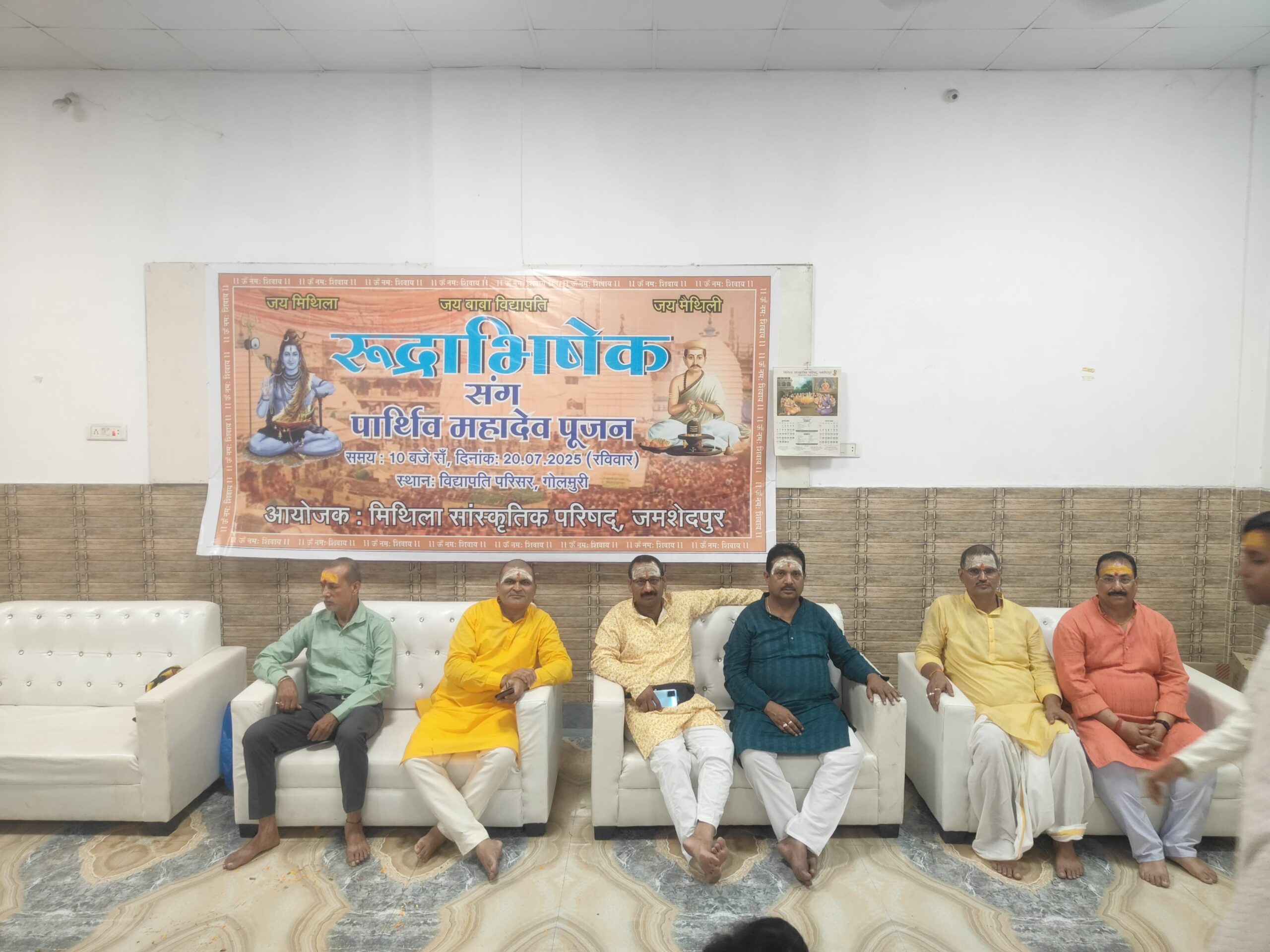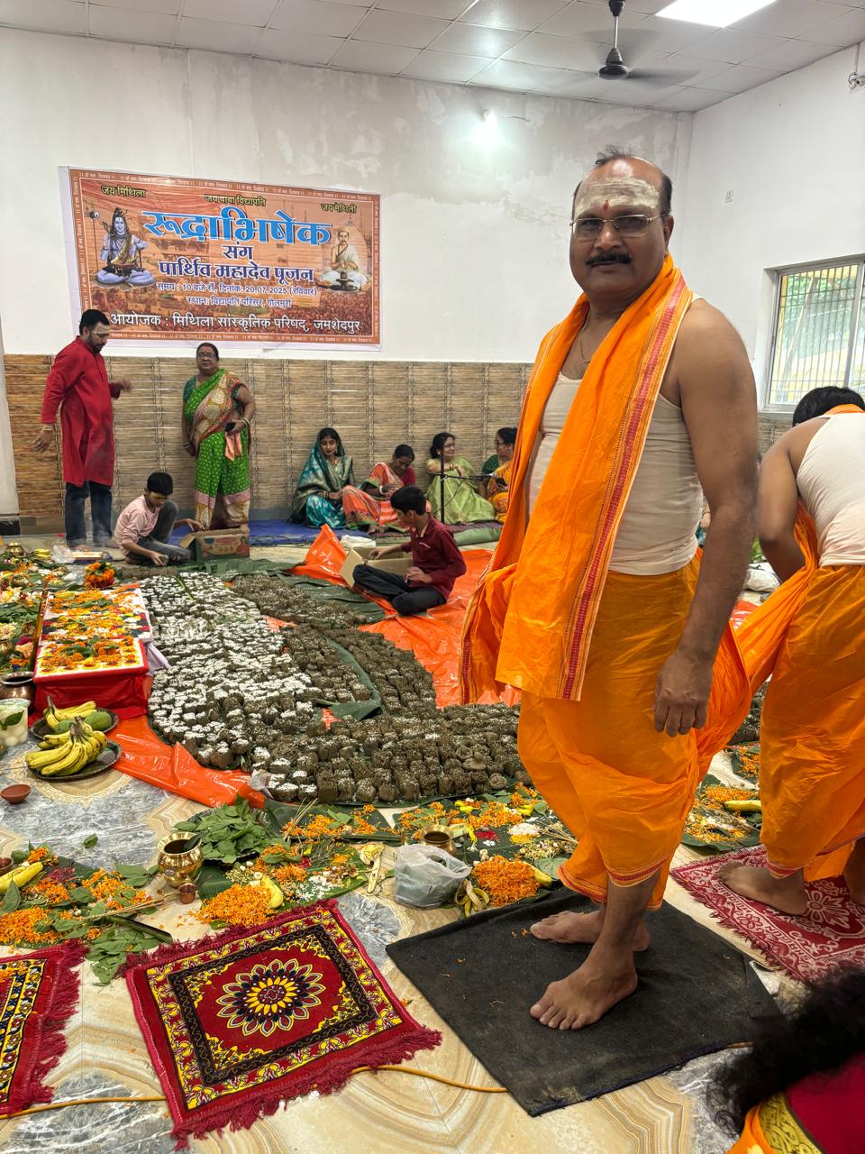 विद्यापति नगर स्थित मिथिला सांस्कृतिक परिषद, जमशेदपुर में शनिवार को पार्थिव शिवलिंग निर्माण एवं रुद्राभिषेक का अत्यंत श्रद्धा और भव्यता से आयोजन हुआ। कार्यक्रम में समाज की 200 से अधिक महिलाओं ने पारंपरिक रीति-रिवाजों के साथ 3 लाख 51 हजार पार्थिव शिवलिंगों का निर्माण कर महादेव का पूजन एवं रुद्राभिषेक किया।