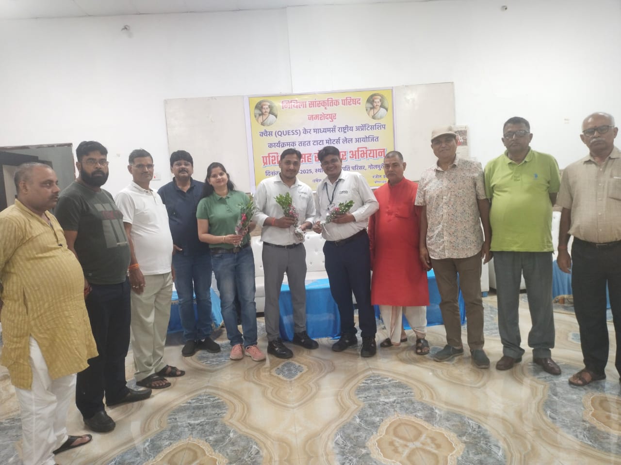 जमशेदपुर। मिथिला सांस्कृतिक परिषद, जमशेदपुर के विद्यापति भवन में राष्ट्रीय अप्रेंटिसशिप कार्यक्रम के अंतर्गत टाटा मोटर्स कंपनी के लिए प्रशिक्षण सह रोजगार मेला का आयोजन किया गया। यह कार्यक्रम क्वैश (Quess) के आधिकारिक प्रतिनिधि सुमित दत्ता और परिषद के रोजगार प्रभारी अरुण कुमार झा (जेसीबी) के नेतृत्व में संपन्न हुआ।