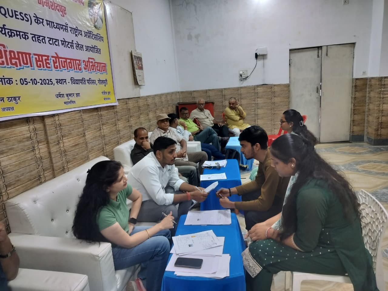 जमशेदपुर। मिथिला सांस्कृतिक परिषद, जमशेदपुर के विद्यापति भवन में राष्ट्रीय अप्रेंटिसशिप कार्यक्रम के अंतर्गत टाटा मोटर्स कंपनी के लिए प्रशिक्षण सह रोजगार मेला का आयोजन किया गया। यह कार्यक्रम क्वैश (Quess) के आधिकारिक प्रतिनिधि सुमित दत्ता और परिषद के रोजगार प्रभारी अरुण कुमार झा (जेसीबी) के नेतृत्व में संपन्न हुआ।
