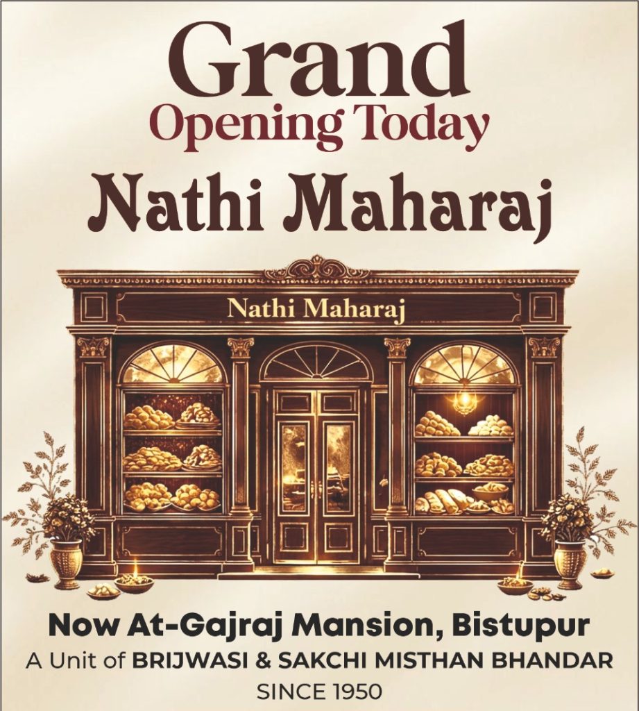 जमशेदपुर। शहरवासियों के लिए पारंपरिक मिठाइयों का एक और भरोसेमंद ठिकाना तैयार हो गया है। नाथी महाराज का नया आउटलेट 29 अप्रैल से बिष्टुपुर स्थित गजराज मैंशन में शुरू हो रहा है, जहां सुबह 11 बजे से ग्राहकों के लिए दरवाजे खोल दिए जाएंगे।