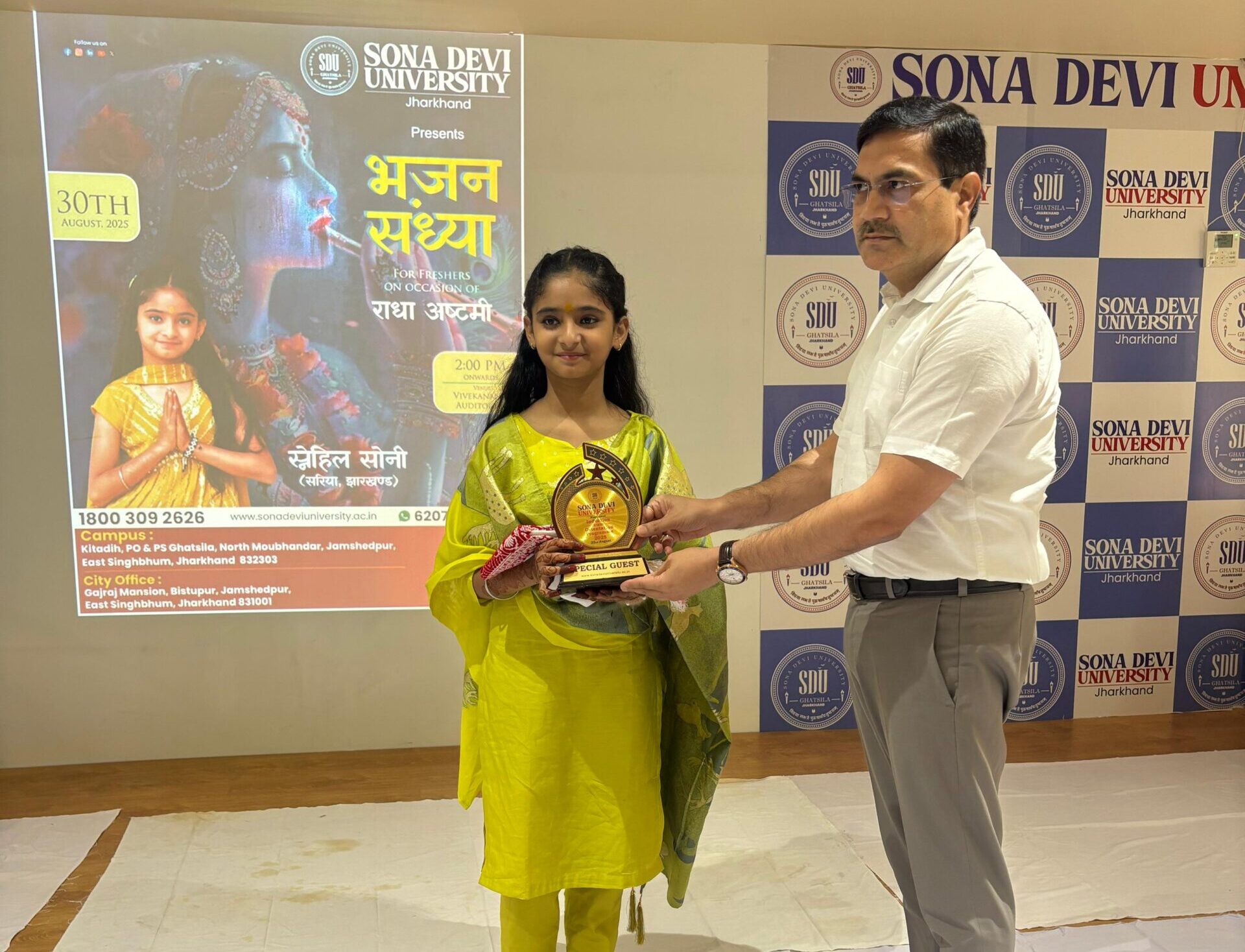 • सोना देवी विश्वविद्यालय के विवेकानन्द ऑडिटोरियम में भजन संध्या का किया गया आयोजन• झारखंड की स्नेहिल सोनी ने अपने सुरीली आवाज में भजन गाकर सभी को सभी श्रोताओं को भक्ति से किया सराबोर