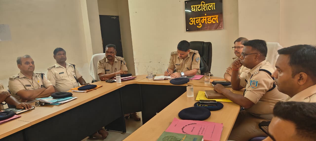 घाटशिला: वरीय पुलिस अधीक्षक (SSP) के आदेशानुसार शनिवार, 24 अप्रैल 2026 को ग्रामीण पुलिस अधीक्षक (SP Rural) द्वारा अनुमंडल पुलिस पदाधिकारी कार्यालय, घाटशिला में एक महत्वपूर्ण समीक्षा बैठक आयोजित की गई। इस बैठक में ग्रामीण क्षेत्र के सभी पुलिस उपाधीक्षक, पुलिस निरीक्षक और थाना प्रभारियों की उपस्थिति रही, जहाँ सुरक्षा व्यवस्था और कानून व्यवस्था को सुदृढ़ करने के लिए कई कड़े निर्देश जारी किए गए।