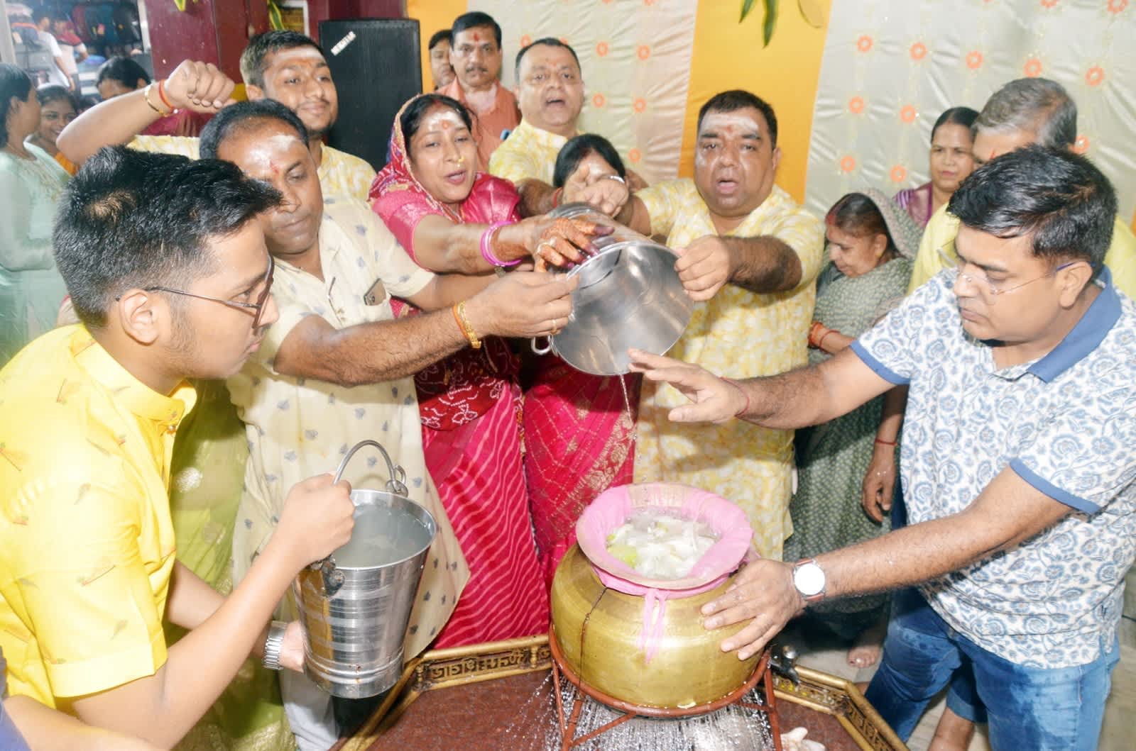 जमशेदपुर। सावन माह के शुभ अवसर पर लगातार दूसरे साल मंगलवार 11 जुलाई को साकची बाजार स्थित श्री श्री साकची शिव मंदिर में सुलतानगंज से आये हुए गंगाजल से भोले बाबा का सहस्त्रघट जलाभिषेक पूजा की गयी। इसका आयोजन शिव मंदिर कमिटी के लालचंद अग्रवाल एंव बबलु अग्रवाल द्धारा अपने पिता (स्व. विनोद कुमार अग्रवाल) की याद में किया गया। इस अवसर पर सैकड़ों की संख्या में भक्तगण शामिल होकर गंगाजल से भोले बाबा का सहस्त्रघट जलाभिषेक किये। मंगलवार सुबह 10 बजे से शिव पूजन तथा दोपहर एक बजे से सुलतानगंज से टैंकर में आये हुए 12 हजार लीटर गंगाजल से भोले बाबा का सहस्त्रघट जलाभिषेक किया गया। संध्या 5 बजे से भोले बाबा का विशेष श्रृंगार एवं महाआरती की गयी। फूलों की लड़ियों से सजे भोले बाबा का विशेष श्रृंगार श्रद्धालुओं को काफी आकर्षित कर रही थी। इसके बाद प्रसाद ग्रहण किया गया। मंगलवार को दिन भर ओम नमः शिवाय, जय जय भोलेनाथ, हर हर महादेव के जयघोष से मंदिर गूंजते रहा। इस दौरान मंदिर के आस-पास का क्षेत्र धार्मिक मय हो गया था। मंदिर में दिन भर भक्तों का तांता लगा रहा। पंडित मूलचंद शर्मा के नेतृत्व में शहर के 21 विदवान पंडितों ने सामूहिक रूप से विधिवत पूजा संपन्न करायी। आयोजकों द्धारा एक लीटर का एक हजार बोतल में गंगाजल भरकर श्रद्धालुओं के बीच निःशुल्क वितरण किया गया। इसके बलावा कई लोग गंगाजल को डबबा और बोतल में भरकर भी ले गये। इस धार्मिक अनुष्ठान को सफल बनाने में प्रमुख रूप से अग्रवाल परिवार, साकची शिव मंदिर कमिटी, मंदिर के आस-पास के बाजार के दुकानदारों का महत्वपूर्ण योगदान रहा। इस मौके पर प्रमुख रूप से समाजसेवी उमेश साह, विजय आनन्द मूनका, शंकर सिंघल, मुकेश मित्तल, संदीप मुरारका, कमल किशोर अग्रवाल, गिरधारी खेमका, बजरंग लाल अग्रवाल, सांवरमल अग्रवाल, अभिषेक अग्रवाल गोल्डी, पंकज छावछरिया, ललित डांगा, मुरारी लाल अग्रवाल, महावीर अग्रवाल, मोहित मुनका, विष्णु गोयल, प्रशांत अग्रवाल, सन्नी संघी, आशीष खन्ना आदि उपस्थित थे।