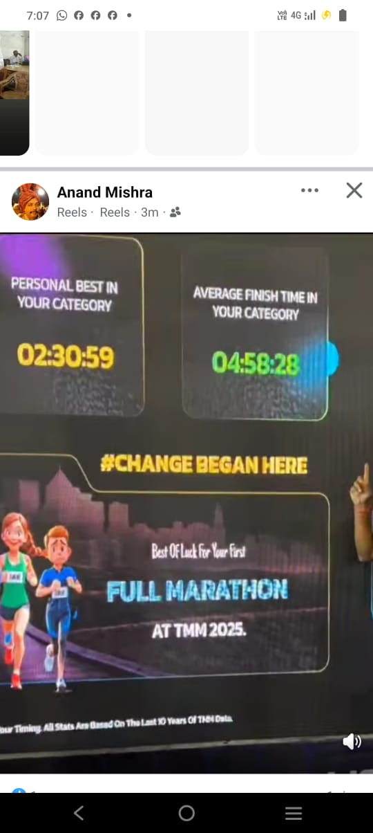 जमशेदपुर। मुंबई में 20वीं टाटा मैराथन मुंबई दौड़ के 42.197 किलोमीटर के फूल मुंबई मैराथन की दूरी साकची थाना प्रभारी साहब पुलिस निरीक्षक आनंद मिश्रा ने 5 घंटे 23 मिनट 31 सेकंड में पूरी की। फुल मैराथन दौड़कर शहर में वापस आने पर विभिन्न संस्थाओं द्वारा उन्हें सम्मानित किया गया है। वह पहले हॉफ मैराथन दौड़ मैं शामिल होते रहे हैं पहली बार वे फुल मैराथन का हिस्सा बने।