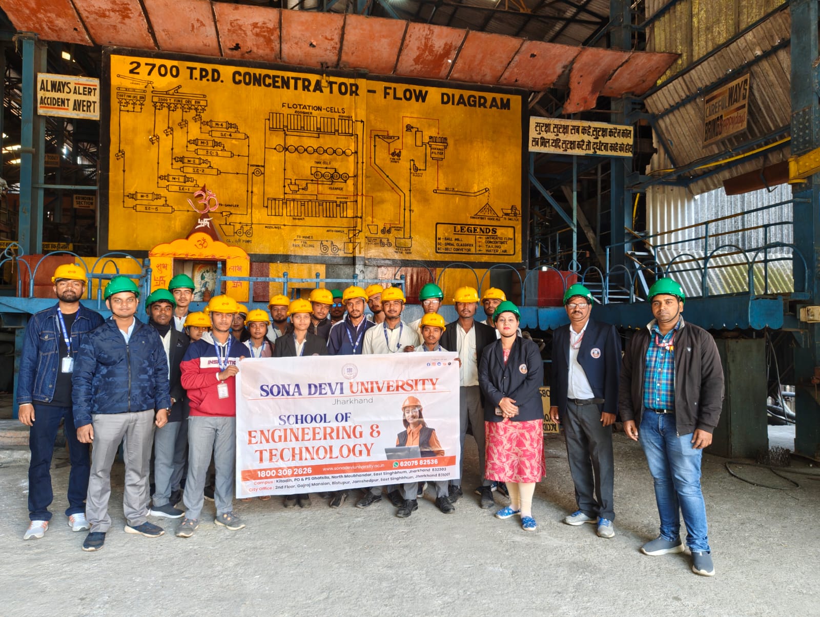 सोना देवी विश्वविद्यालय के स्कूल ऑफ इंजीनियरिंग एण्ड टेक्नोलॉजी घाटशिला के छात्रों ने आज दिनांक पांच दिसंबर 2025 को हिन्दुस्तान कॉपर लिमिटेड के इंडियन कॉपर कॉम्पलेक्स आईसीसी के मुसाबनी कांस्ट्रेटर प्लांट का औद्योगिक भ्रमण किया. इस शैक्षिक भ्रमण का उद्देश्य विद्यार्थियों को खनन एवं धातु प्रसंस्करण उद्योग की वास्तविक कार्यप्रणाली और तकनीकी प्रक्रियाओं से परिचित कराना रहा. यह प्लांट सुरदा, राखा एवं अन्य खदानों से प्राप्त तांबे के अयस्क का वैज्ञानिक तरीके से परिशोधन, समृद्धिकरण, परिशुद्ध तांबा प्राप्त करने के तरीके के बारे में बताया गया. इस शैक्षिक भ्रमण के दौरान आज एचसीएल के उपमहाप्रबंधक श्री जेपी मिश्रा, वरिष्ठ अधिकारी एम जेड खान तथा इलेक्ट्रिकल विभाग की श्वेता कुमारी ने छात्र छात्राओं को प्लांट संचालन क्रशिंग ग्राइंडिंग प्लोटेशन प्रक्रिया तथा गुणवत्ता नियंत्रण के साथ साथ सुरक्षा मानकों के बारे में बताया. साथ ही कार्य के दौरान बरते जाने वाली सुरक्षा प्रक्रिया और औद्योगिक वातावरण के बारे में विस्तार से बताया. इस दौरान विद्यार्थियों को माइनिंग, मेकेनिकल, इलेक्ट्रिकल और प्रोसेस इंजीनियरिंग के व्यवहारिक अनुप्रयोगों को प्रत्यक्ष रूप से समझने का अवसर दिया जिससे विद्यार्थियों की तकनीकी समझ, औद्योगिक दृष्टि तथा भविष्य में रोजगार प्राप्त करने की संभावनाओं के बारे में बताया. इस शैक्षणिक भ्रमण के दौरान इंजीनियरिंग विभाग की अध्यक्ष पूजा तिवारी, मेकेनिकल विभाग के अध्यक्ष विनय प्रकाश चैधरी तथा ट्रेनिंग एण्ड प्लेसमेंट सेल के श्री सिद्धांत कुमार एवं डॉ नीलमणि कुमार उपस्थित थे.