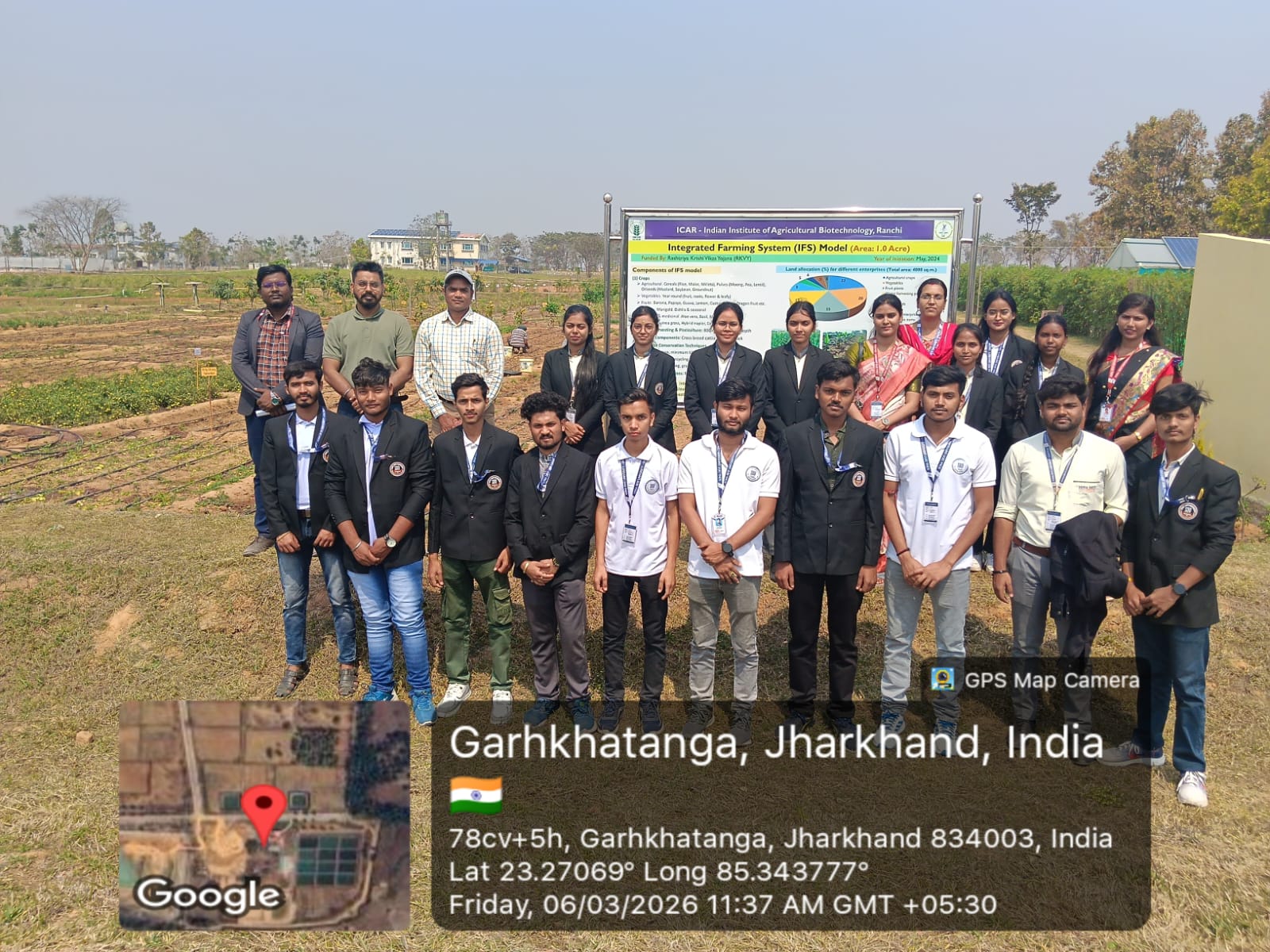 घाटशिला स्थित Sona Devi University के बीएससी एग्रीकल्चर साइंस और स्कूल ऑफ बायोटेक्नोलॉजी के विद्यार्थियों ने रांची के गढ़खटंगा स्थित Indian Institute of Agricultural Biotechnology का शैक्षणिक भ्रमण किया। इस भ्रमण का उद्देश्य विद्यार्थियों को कृषि जैव प्रौद्योगिकी से जुड़े उन्नत अनुसंधान और प्रयोगशाला तकनीकों का व्यावहारिक अनुभव प्रदान करना था।इस दौरान छात्रों ने संस्थान के फार्म और प्रयोगशालाओं का अवलोकन कर वहां चल रहे विभिन्न शोध कार्यों के बारे में विस्तार से जानकारी प्राप्त की।
