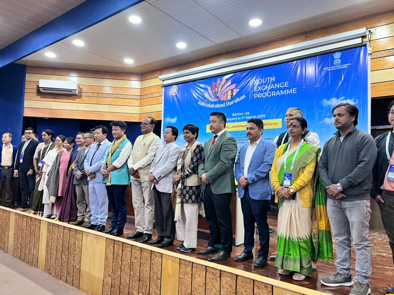 पूर्वोत्तर भारत की सांस्कृतिक विविधता और राष्ट्रीय एकता को सशक्त बनाने के उद्देश्य से तेरह दिवसीय ‘अष्टलक्ष्मी दर्शन’ यूथ एक्सचेंज प्रोग्राम का विधिवत शुभारंभ हुआ। इस कार्यक्रम में झारखंड एवं पांडिचेरी राज्य से नोडल अधिकारियों और छात्र-छात्राओं की टीम ने उत्साहपूर्वक सहभागिता की।