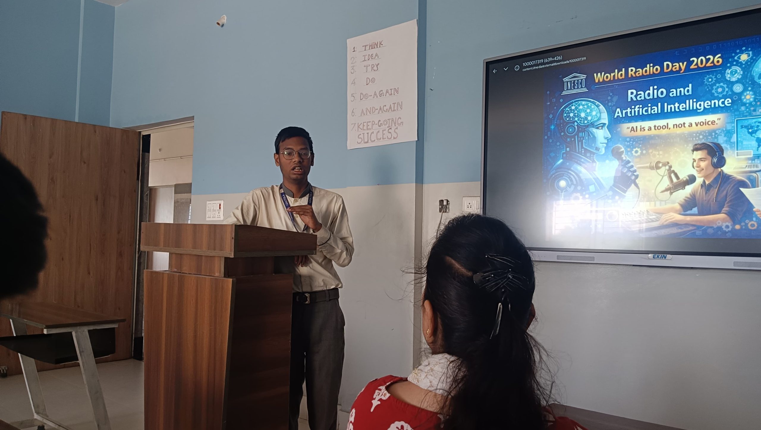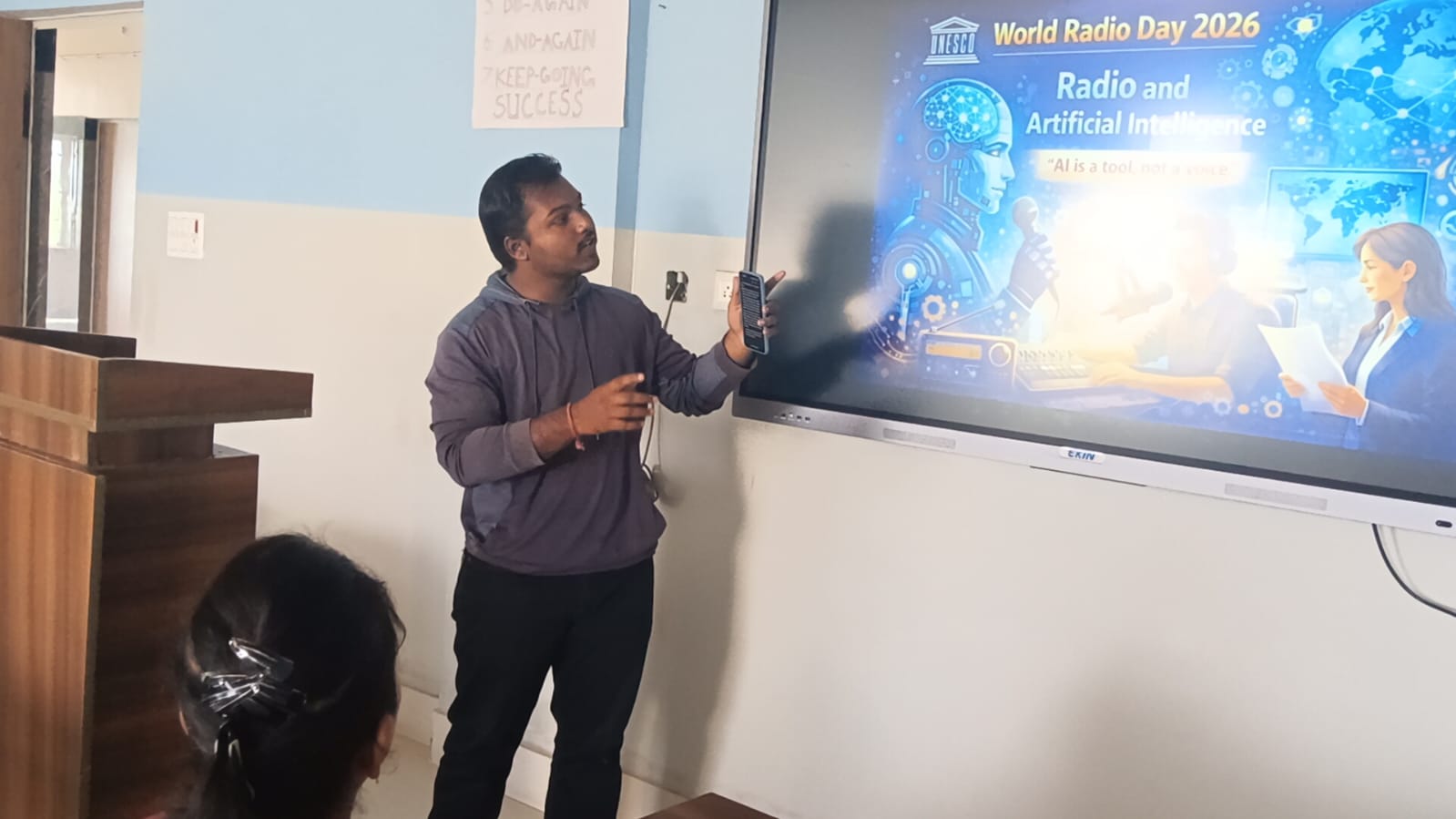 सोना देवी विश्वविद्यालय घाटशिला में आज वर्ल्ड रेडियो डे के अवसर पर स्कूल ऑफ इंजीनियरिंग एण्ड टेक्नोलॉजी तथा स्कूल ऑफ जर्नलिज्म द्वारा एक कार्यक्रम का आयोजन किया गया. रेडियो एण्ड आर्टिफिशियल इंटेलिजेंस विषय पर आयोजित डिस्कशन में विद्यार्थियों ने अपने विचार रखे. विद्यार्थियों ने कहा कि आर्टीफिशियल इंटेलिजेंस डेटा पर आधारित है जो लोगों को संवेगात्मक रूप से जोड़ने में उतना प्रभावशाली नहीं है लेकिन इसकी पहुंच बहुत लोगों तक है. इसके द्वारा सूचनायें एक ही समय में हजारों मील दूर तक तुरंत पहुंच जाती है. यह जनसंचार के माध्यमों द्वारा बहुत तेजी से फैलता है. इस मौके पर स्कूल ऑफ इंजीनियरिंग एण्ड टेक्नोलॉजी की विभागाध्यक्ष पूजा तिवारी ने कहा कि आर्टीफिशियल इंटेलिजेंस एक टूल है जबकि रेडियो जनमानस की आत्मा है. यह लोगों को बहुत सरलता से सहज भाव से अपने से जोड़ने में सक्षम है और रेडियो के साथ श्रोताओं का संबंध बहुत गहरा और पुराना है. जिस तरह हमारे माता-पिता, अभिभावक, शिक्षकों ने हमारे साथ आत्मीय संबंध स्थापित किया, आर्टीफिशियल इंटेलिजेंस उस तरह संवाद स्थापित करने या भावनात्मक संबंध स्थापित करने में सफल नहीं है. वहीं स्कूल ऑफ जर्नलिज्म के विभागाध्यक्ष डॉ नीलमणि कुमार ने कहा कि रेडियो सूचना, शिक्षा और मनोरंजन उपलब्ध कराने का एक सशक्त माध्यम है. आर्टीफिशियल इंटेलिजेंस की सहायता से और गुणवत्तापूर्ण कार्यक्रम बनाए और प्रसारित किये जा सकते हैं. इस मौके पर आयोजित कार्यक्रम में विश्वविद्यालय के विभिन्न विभागों के छात्र छात्राएं उपस्थित हुए.