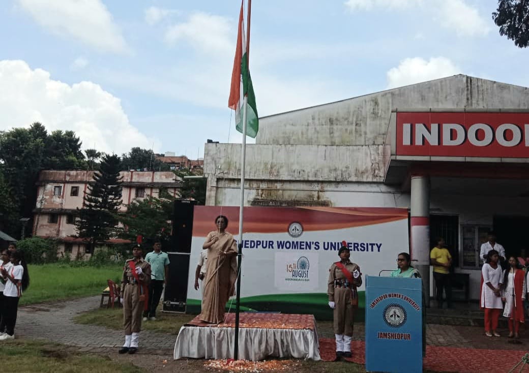 जमशेदपुर वीमेन्स यूनिवर्सिटी बिष्टुपुर प्रांगण और सिदगोड़ा कैम्पस में माननीय कुलपति प्रो० डॉ अंजिला गुप्ता के द्वारा झंडोत्तोलन किया गया । इस अवसर पर माननीय कुलपति महोदया ने स्वतंत्रता दिवस की शुभकामनाएँ देते हुए कहा कि देश को आजादी दिलाने में कई महापुरुषों का योगदान है। कई तरह के आन्दोलनों एवं लम्बे संघर्ष के बाद हमारा देश आजाद हुआ।1857 में सैनिकों ने विद्रोह किया था लेकिन इससे पहले जनजातीय विद्रोह झारखण्ड तथा भारत के कई प्रांतो में हो चुके हैं। विश्वविद्यालय की उपलब्धियों के संदर्भ में कहा कि हमारे सभी सत्र समय पर हो रहे है। परीक्षाएं समय पर हो रही हैं। किसी भी संस्था के लिए एक बेहतर टीम चाहिए जो कि इस विश्वविद्यालय में है। NEP के कोर्स भी यहाँ सुनियोजित ढंग से चल रहे हैं।