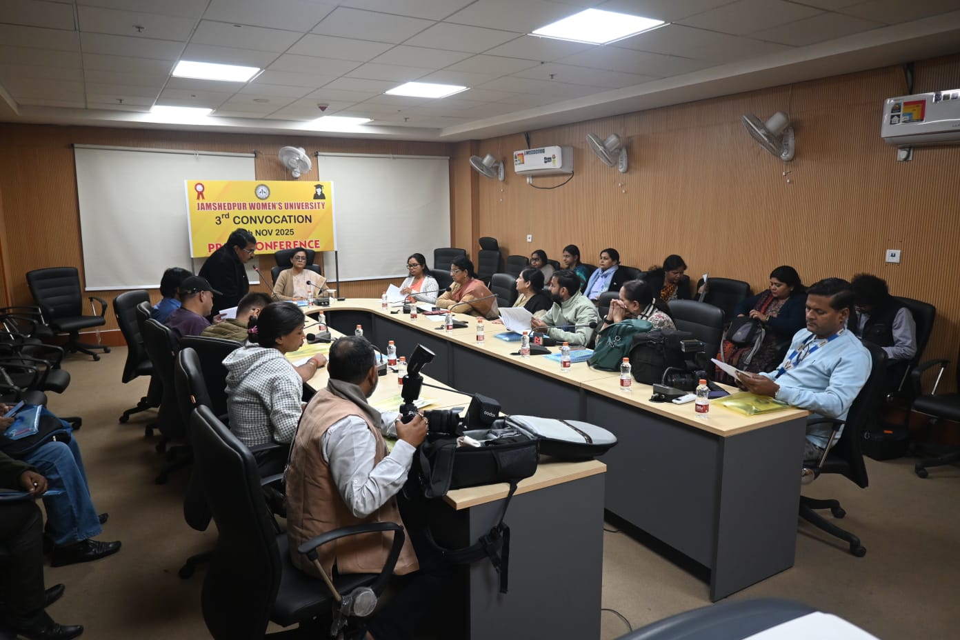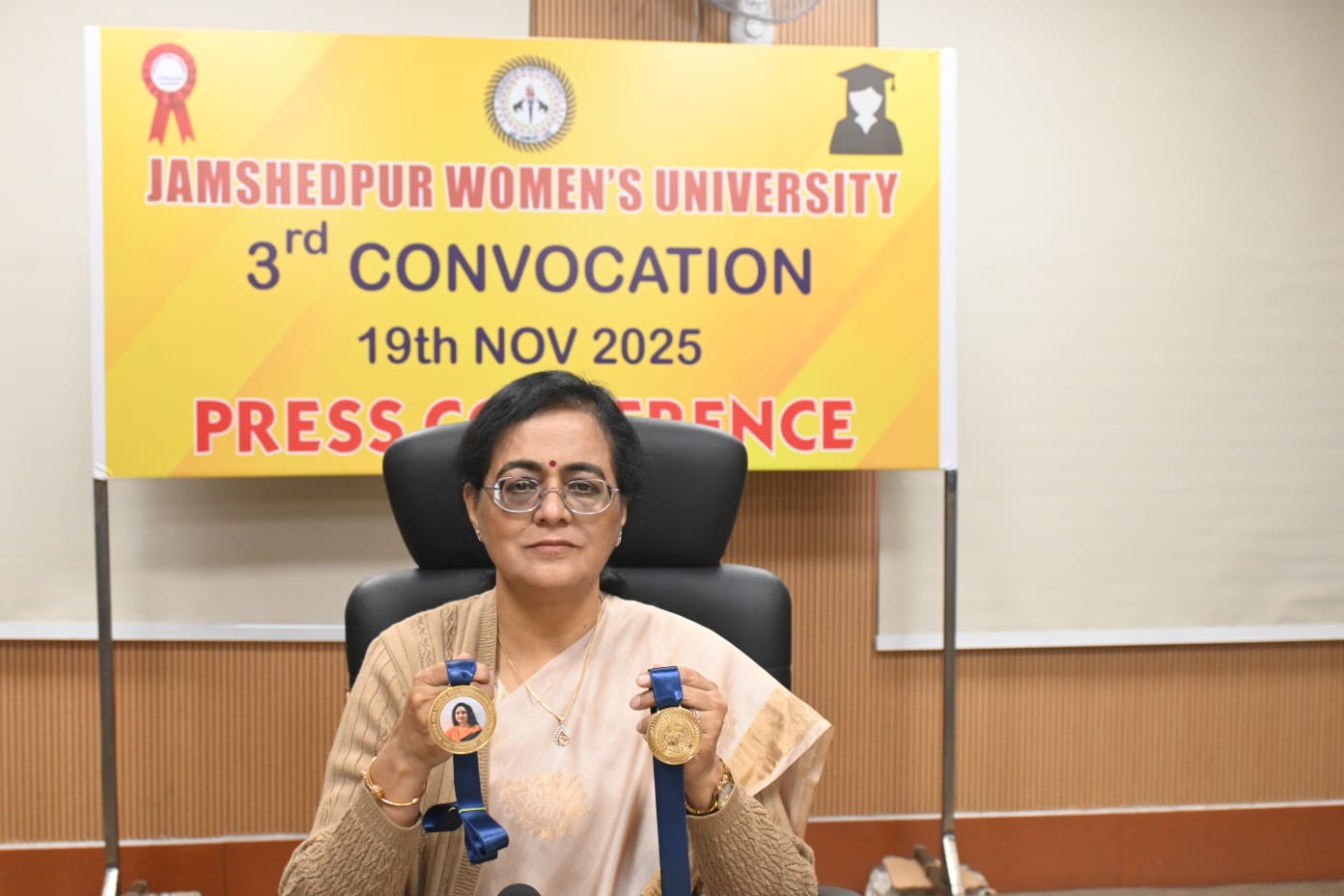 जमशेदपुर महिला विश्वविद्यालय के तृतीय दीक्षांत समारोह की तैयारियों को लेकर सोमवार, 17 नवंबर को सिदगोड़ा परिसर में विस्तृत प्रेस कॉन्फ़्रेंस आयोजित की गई। इस अवसर पर जमशेदपुर महिला विश्वविद्यालय कुलपति प्रो. (डॉ.) अंजिला गुप्ता मौजूद थी।