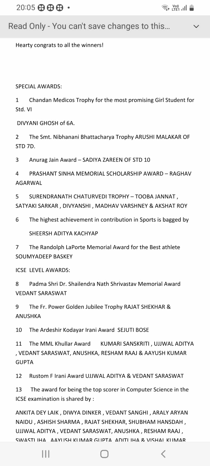 जमशेदपुर के बिष्टुपुर स्थित लोयोला स्कूल के फेजी ऑडिटोरियम में आज शाम एनुअल प्राइज नाइट का आयोजन हुआ जिसमें अपनी अपनी कक्षाओं और विषयों में अव्वल आने वाले छात्र छात्राओं को अवार्ड दिए गए.ICSE और ISC में उत्कृष्ट प्रदर्शन करनेवालों छात्र छात्राओं को भी सम्मानित किया गया.कार्यक्रम फादर रेक्टर के एस जोसेफ के नेतृत्व में आयोजित हुआ.