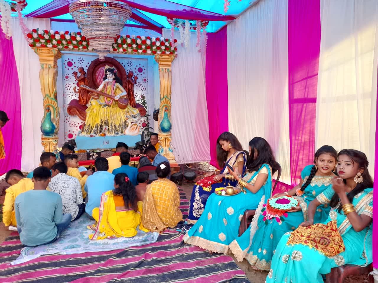 वरदे वीणा वादिनी वरदे… बसंत पंचमी के मौके पर जामताड़ा जिला में मां शारदे का दरबार सज चुका है और उनकी स्तुति हो रही है। मां सरस्वती की आराधना में मंत्रोंच्चारण से वातावरण गूंज उठा। सरस्वती पूजा को लेकर विद्यार्थियों और बच्चों में उत्साह देखते ही बन रहा था। पूजा को लेकर बीते देर रात से ही पूजा पंडालों को रात में हीं अंतिम रूप दे दिया गया था। जिला के शिक्षण संस्थानों के अलावा गली मोहल्ले में भी मां सरस्वती की आराधना की जा रही है।