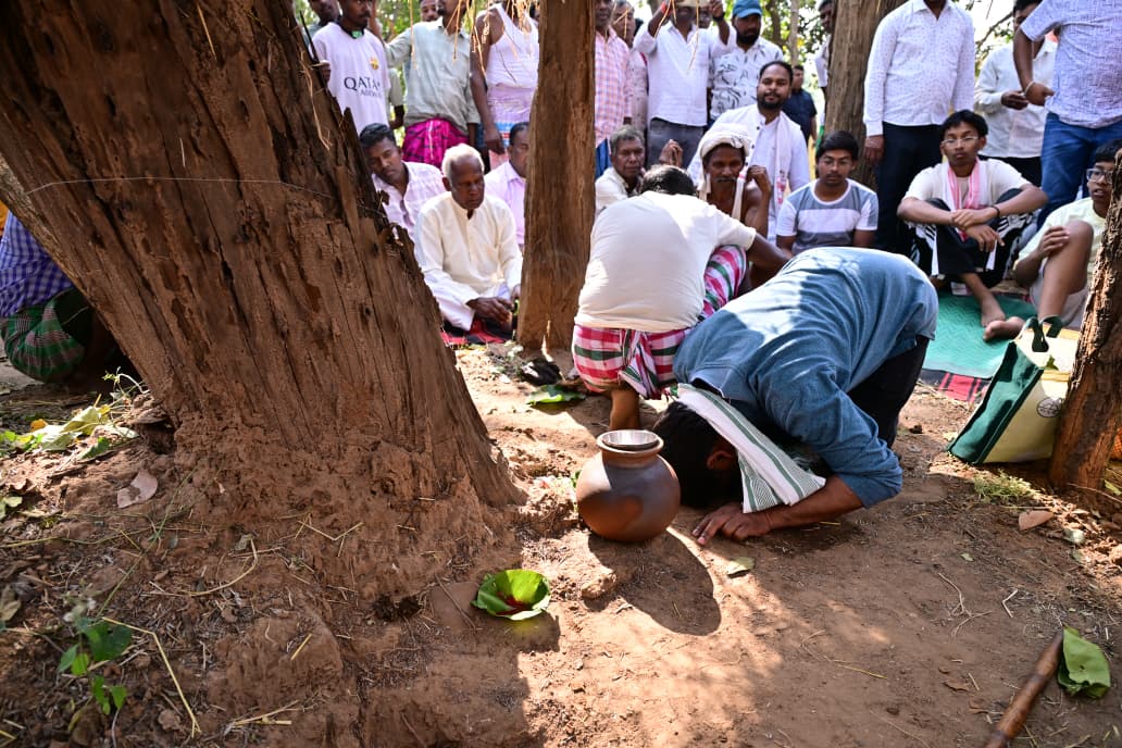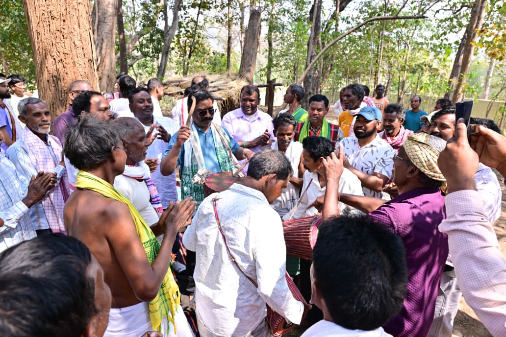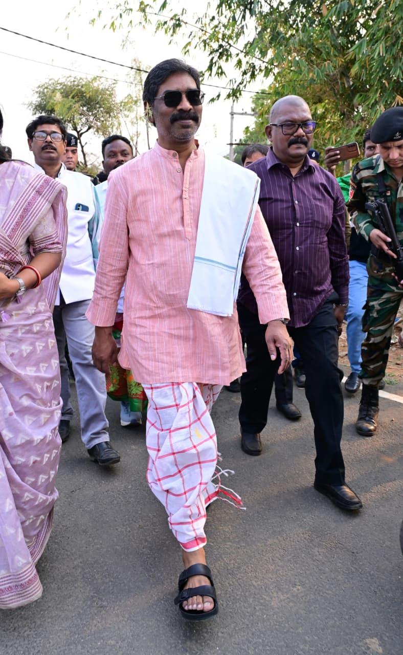 मुख्यमंत्री अपने निवास स्थान से ग्रामीणों के साथ पदयात्रा करते हुए जाहेर थान पहुंचे और ‘बाहा पूजा’ में भाग लिया।