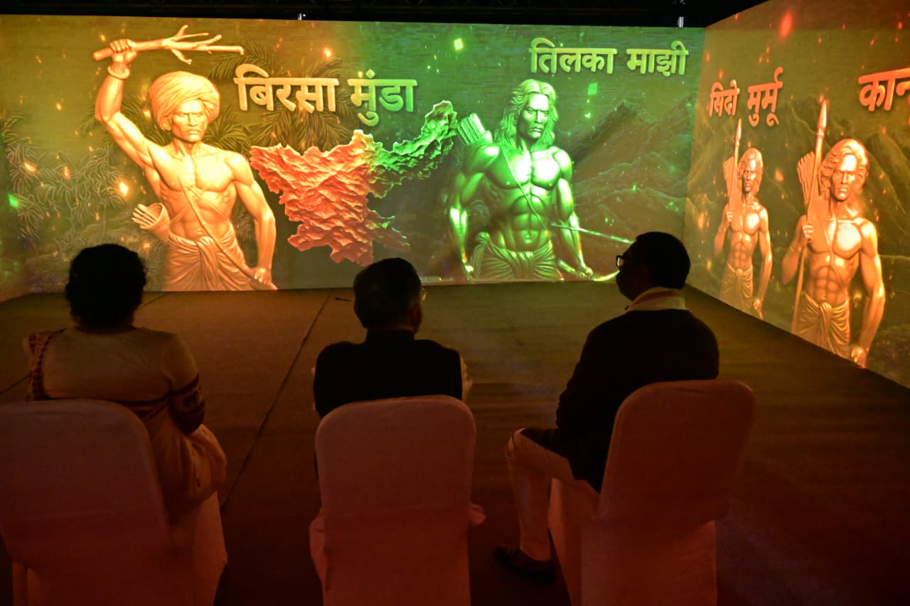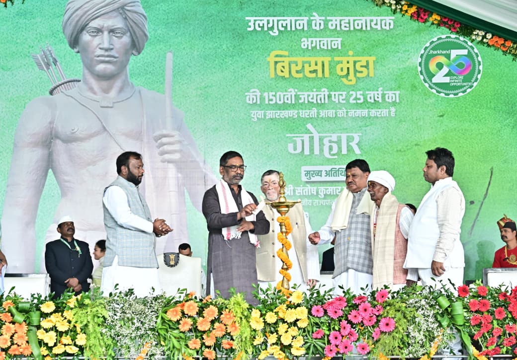 बिरसा मुंडा कॉम्प्लेक्स उलिहातु, खूंटी में आज धरती आबा भगवान बिरसा मुंडा की 150वीं जयंती एवं राज्य स्थापना दिवस के अवसर पर आयोजित कार्यक्रम में माननीय राज्यपाल श्री संतोष कुमार गंगवार, माननीय मुख्यमंत्री श्री हेमन्त सोरेन एवं जनजातीय कार्य मंत्रालय भारत सरकार के मंत्री श्री जुएल ओराम सम्मिलित हुए। यह समारोह धरती आबा भगवान बिरसा मुंडा के जन्म-जयंती पर पुष्पांजलि कार्यक्रम के उपरांत आयोजित की गई।