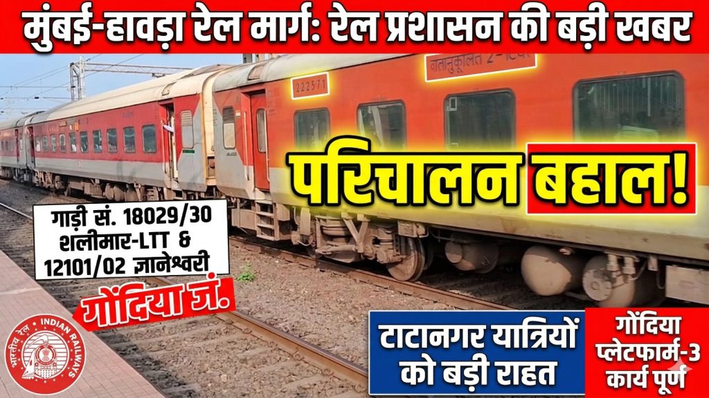 दक्षिण पूर्व मध्य रेलवे (SECR) नागपुर मंडल ने रेल यात्रियों को एक बड़ी खुशखबरी दी है। गोंदिया स्टेशन पर चल रहे निर्माण कार्य के कारण रद्द की गई कई प्रमुख एक्सप्रेस ट्रेनों का परिचालन तत्काल प्रभाव से फिर से शुरू (बहाल) कर दिया गया है। अप्रैल महीने में यात्रा करने की योजना बना रहे हजारों यात्रियों, विशेषकर झारखंड के टाटानगर (जमशेदपुर) और चक्रधरपुर से मुंबई या कोलकाता की ओर जाने वाले लोगों के लिए यह एक बहुत बड़ी राहत की खबर है।