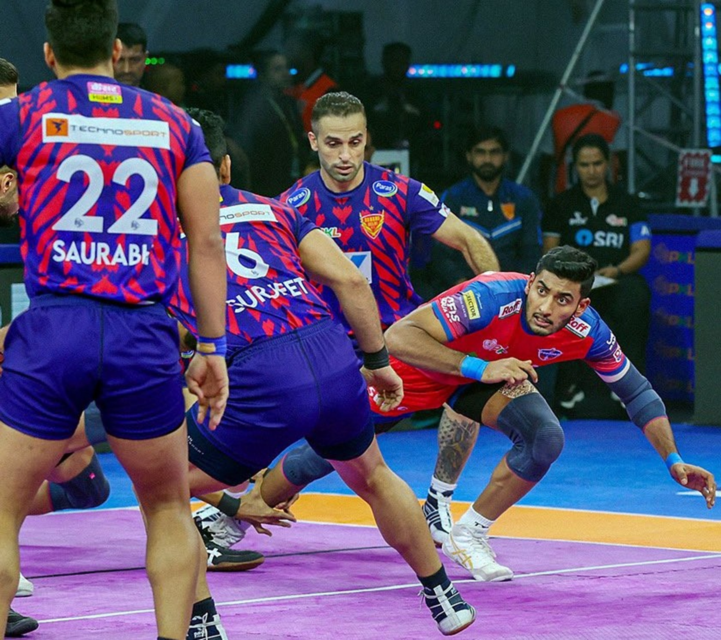 बहरहाल, शुरुआती 10 मिनट यूपी के नाम रहे। उसने 8-6 की लीड के साथ पहला क्वार्टर समाप्त किया। उसने गगन की बदौलत 4-2 की लीड से शुरुआत की। अगले कुछ पलों में दिल्ली ने हालांकि स्कोर 5-5 से बराबर कर दिया लेकिन यूपी ने गगन के अलावा भवानी और शिवम ने सराहनीय खेल की बदौलत फिर से बढ़त ले ली। इस दौरान यूपी के डिफेंस ने बेहतर खेल दिखाया जबकि रेडर सुल्तान फजल जैसे डिफेंडर को भी छकाने में सफल रहे।