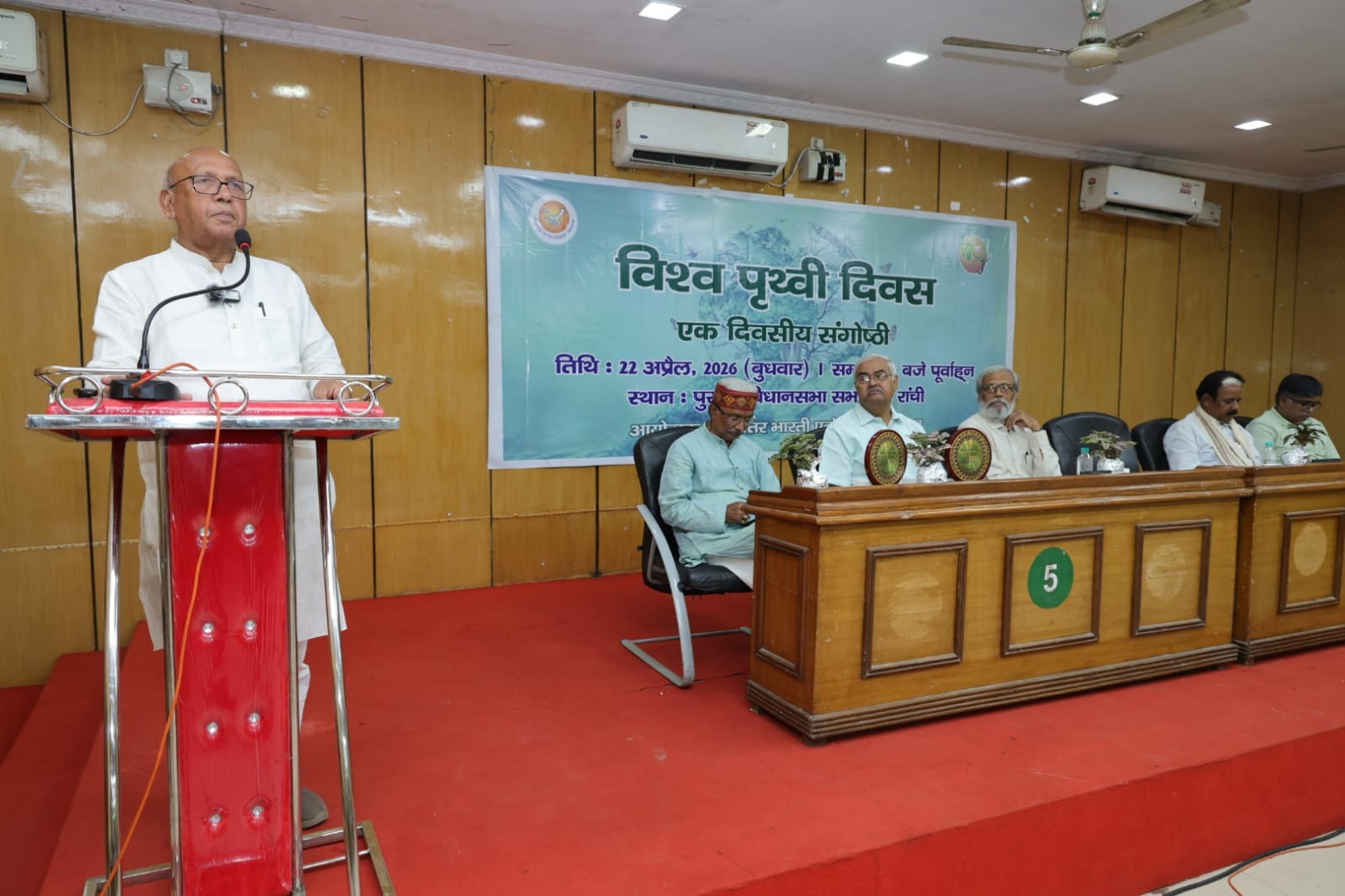 झारखण्ड रक्षा शक्ति के पूर्व कुल सचिव डॉ. एम.के. जमुआर ने कहा कि पर्यावरण और पृथ्वी के संबंध में जो बातें कही गयीं, वही बातें हमारे 5 हजार साल पहले लिखी गयी अर्थववेद में उल्लिखित है। विडंबना है कि हम अपने ग्रंथों को नहीं पढ़ते है, उनमें दिये गए सुझावों, दिशा-निर्देशों का पालन नहीं करते। इन सबका मूल कारण हमारे संस्कृति में अंग्रेजीयत का समा जाना है। हम अंग्रेजी के प्रभाव में अपने संस्कार-संस्कृति को भूलते जा रहे हैं। हमारे वैदिक ग्रंथ तीन चीजों के बारे में प्रमुखता से बताते हैं। पहला जल, दूसरा वनस्पति अर्थात प्रकृति और तीसरा वायु। अगर हम इन तीनों तत्वों के शुद्धता पर ध्यान देंगे तो हमारी पृथ्वी और इसमें रहने वाले जीवों को कोई दिक्कत नहीं होगी।