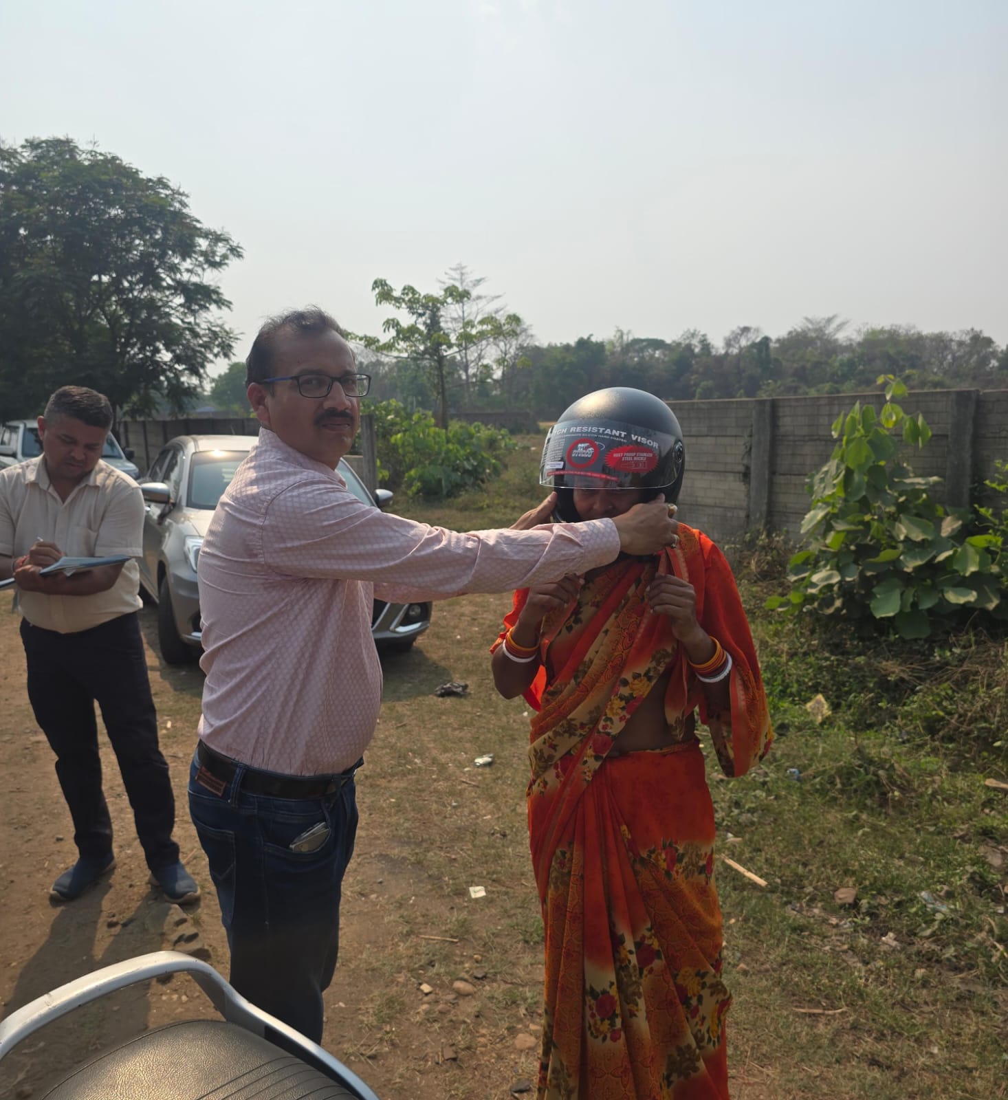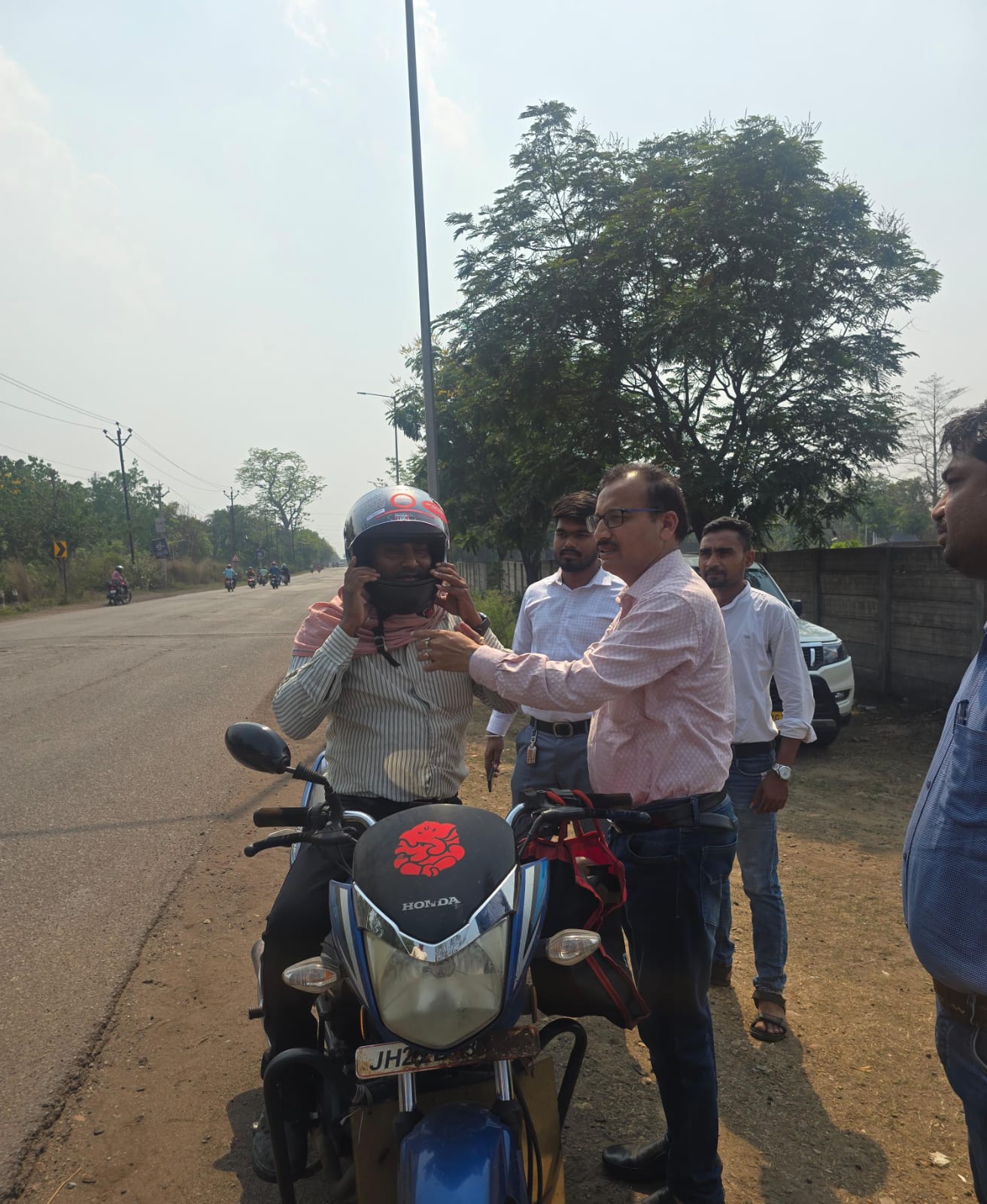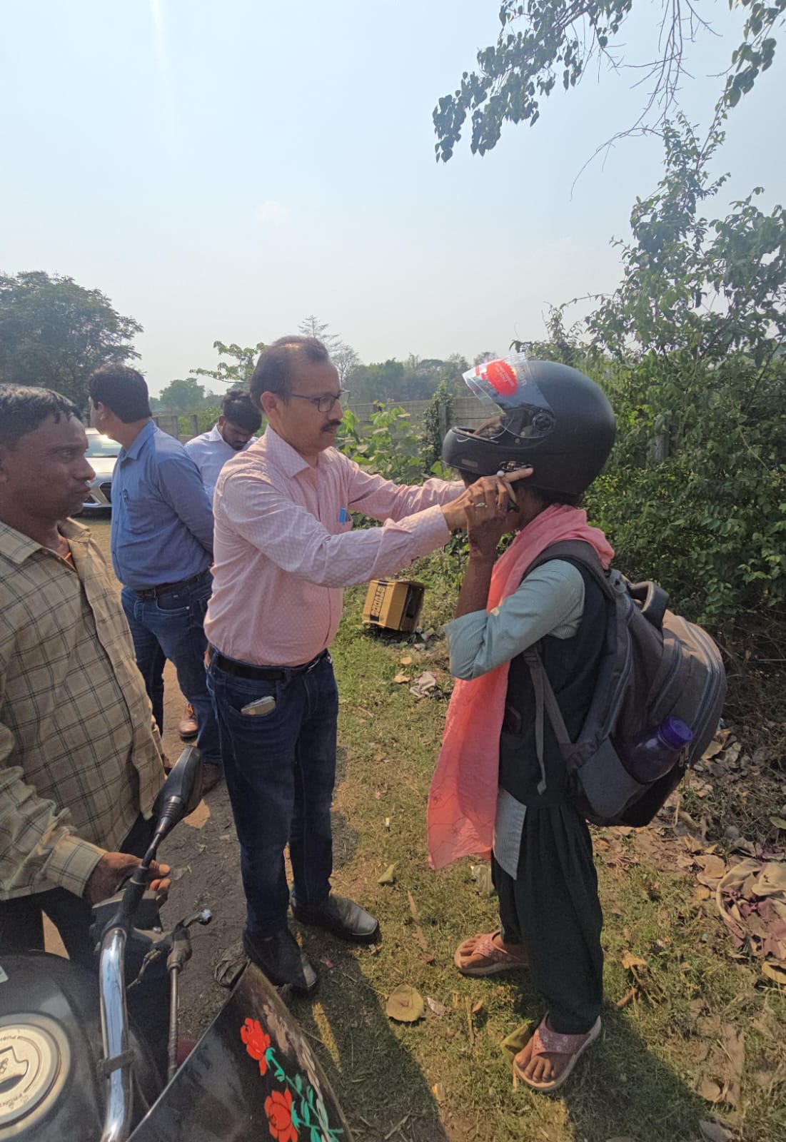 जुर्माना भी और सुरक्षा भी: चालकों को दिए गए हेलमेट