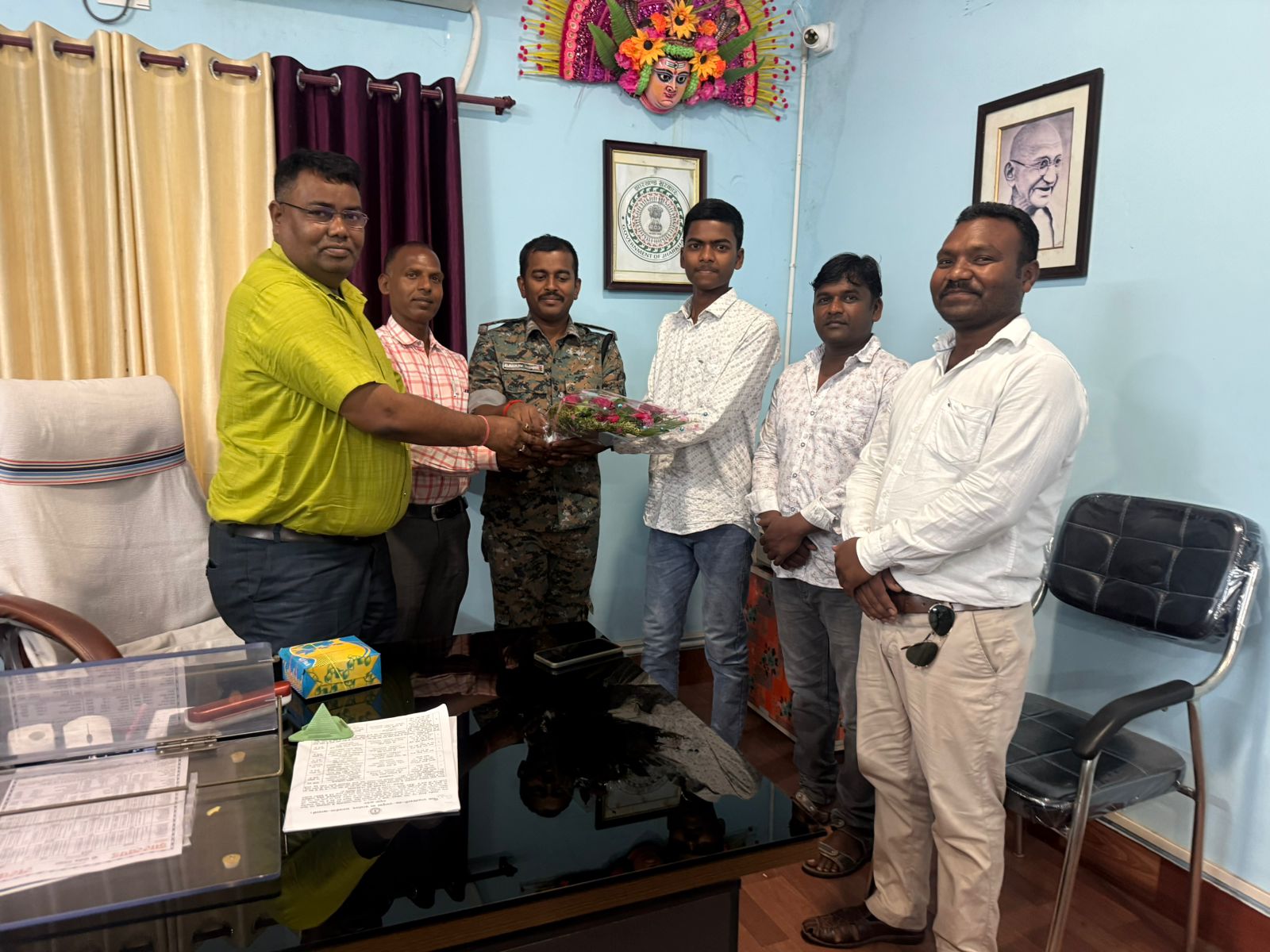 खरसावां: सरायकेला-खरसावां जिले का मान बढ़ाने वाले मैट्रिक परीक्षा 2026 के जिला टॉपर रौनक हेमब्रोम को खरसावां प्रखंड मुख्यालय में गौरवपूर्ण तरीके से सम्मानित किया गया । रौनक की इस बड़ी उपलब्धि पर प्रखंड के वरीय अधिकारियों ने उन्हें भविष्य की चुनौतियों के लिए शुभकामनाएं दीं।