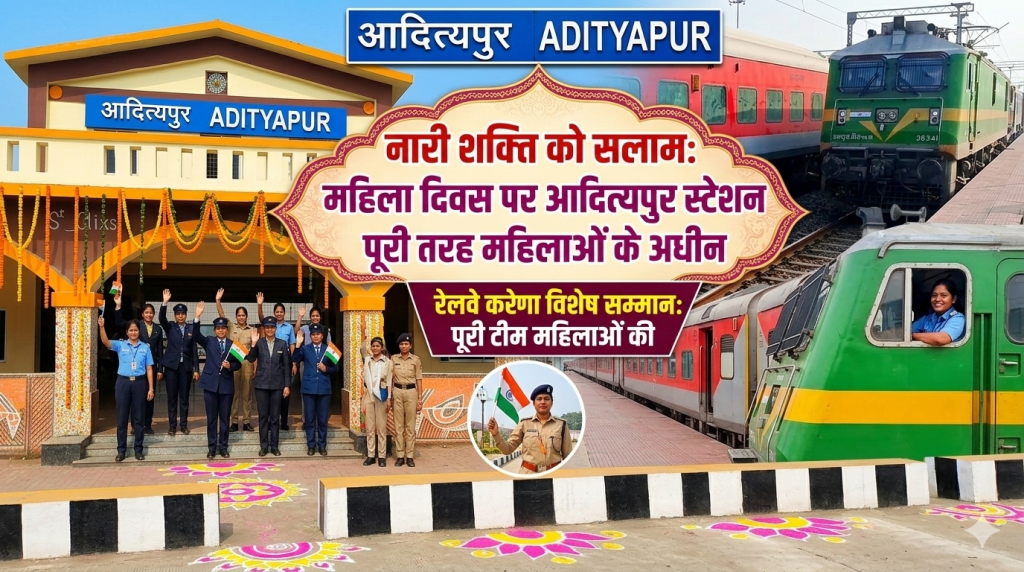 अंतरराष्ट्रीय महिला दिवस के अवसर पर भारतीय रेलवे द्वारा एक विशेष पहल के तहत आदित्यपुर रेलवे स्टेशन का संचालन पूरी तरह महिला कर्मचारियों के हाथों में सौंपा जाएगा। इस अवसर पर स्टेशन पर कार्यरत महिला कर्मचारियों के साथ-साथ महिला लोको पायलट और महिला ट्रेन मैनेजरों को भी सम्मानित किया जाएगा। इस पहल का उद्देश्य रेलवे सेवाओं में महिलाओं की बढ़ती भागीदारी को प्रोत्साहित करना और उनके योगदान को सम्मान देना है।