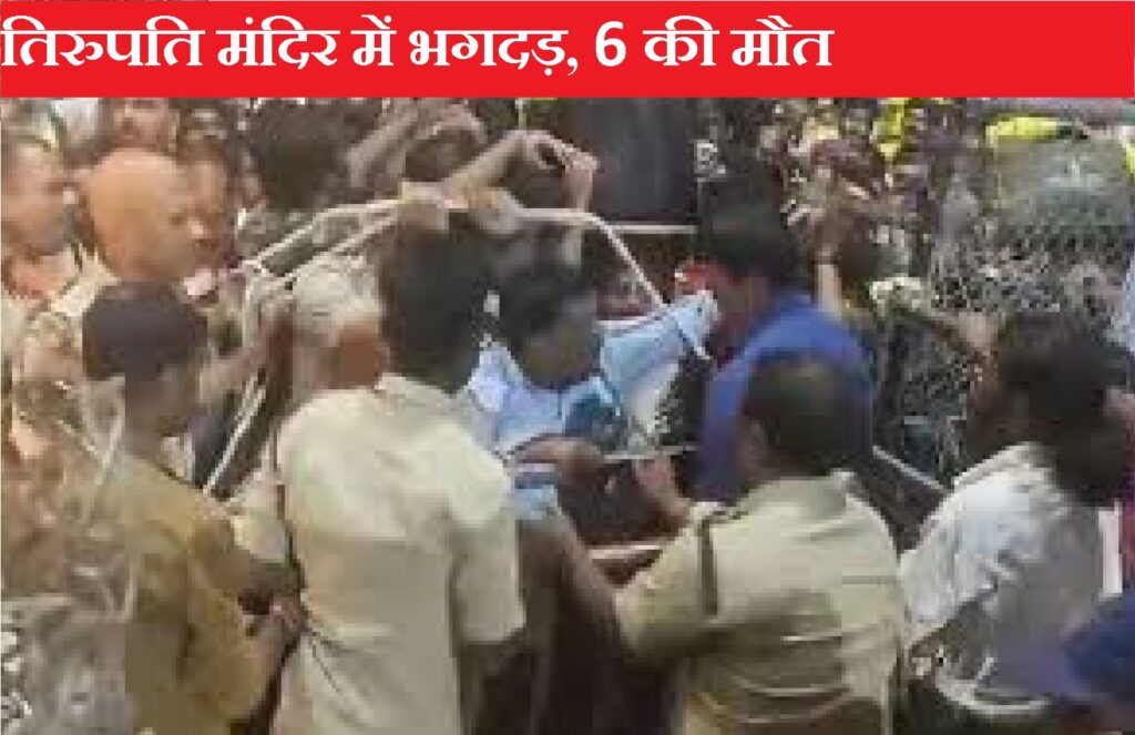 आंध्र प्रदेश के तिरुपति मंदिर में भगदड़ मचने से छह श्रद्धालुओं की मौत हो गई है यह घटना उस काउंटर के पास हुई जहां वैकुंठ एकादशी सर्वदर्शन टोकन जारी किए जाते हैं. इस घटना में दो अन्य लोग घायल हो गए हैं. उन घायलों को इलाज के लिए तिरुपति रुया अस्पताल ले जाया जा रहा है. तिरुपति मंदिर के रामानायुडू स्कूल के पास भगदड़ में सेलम के मल्लिगा (50) के साथ 5 लोगों की मौत हो गई. इन मौतों को लेकर उनके रिश्तेदारों ने अस्पताल में प्रदर्शन किया.खबरों में बताया गया कि तिरुमला स्थित भगवान वेंकटेश्वर स्वामी मंदिर में बुधवार रात भगदड़ मचने से छह श्रद्धालुओं की मौत हो गई और कई अन्य घायल हो गए. तिरुमला तिरुपति देवस्थानम (टीटीडी) प्रमुख ने यह जानकार दी. यह भगदड़ उस समय मची, जब वैकुंठ द्वार दर्शनम के लिए सैकड़ों लोग टिकट पाने की कोशिश कर रहे थे. देश भर से सैकड़ों श्रद्धालु 10 जनवरी से शुरू होने वाले 10 दिवसीय वैकुंठ द्वार दर्शनम के लिए यहां आए हैं.सीएम एन चंद्रबाबू नायडू ने घटना में घायलों को दिए जा रहे इलाज के बारे में अधिकारियों से फोन पर बात की. सीएम ने उच्च अधिकारियों को घटना स्थल पर जाकर राहत उपाय करने का आदेश दिया है ताकि घायलों को बेहतर उपचार मिल सके. आंध्र प्रदेश के मुख्यमंत्री चंद्रबाबू नायडू ने तिरुमाला श्रीवारी वैकुंठ द्वार में दर्शन टोकन के लिए तिरुपति में विष्णु निवासम के पास हुई भगदड़ में 6 श्रद्धालुओं की मौत पर गहरा दुख जाहिर किया.